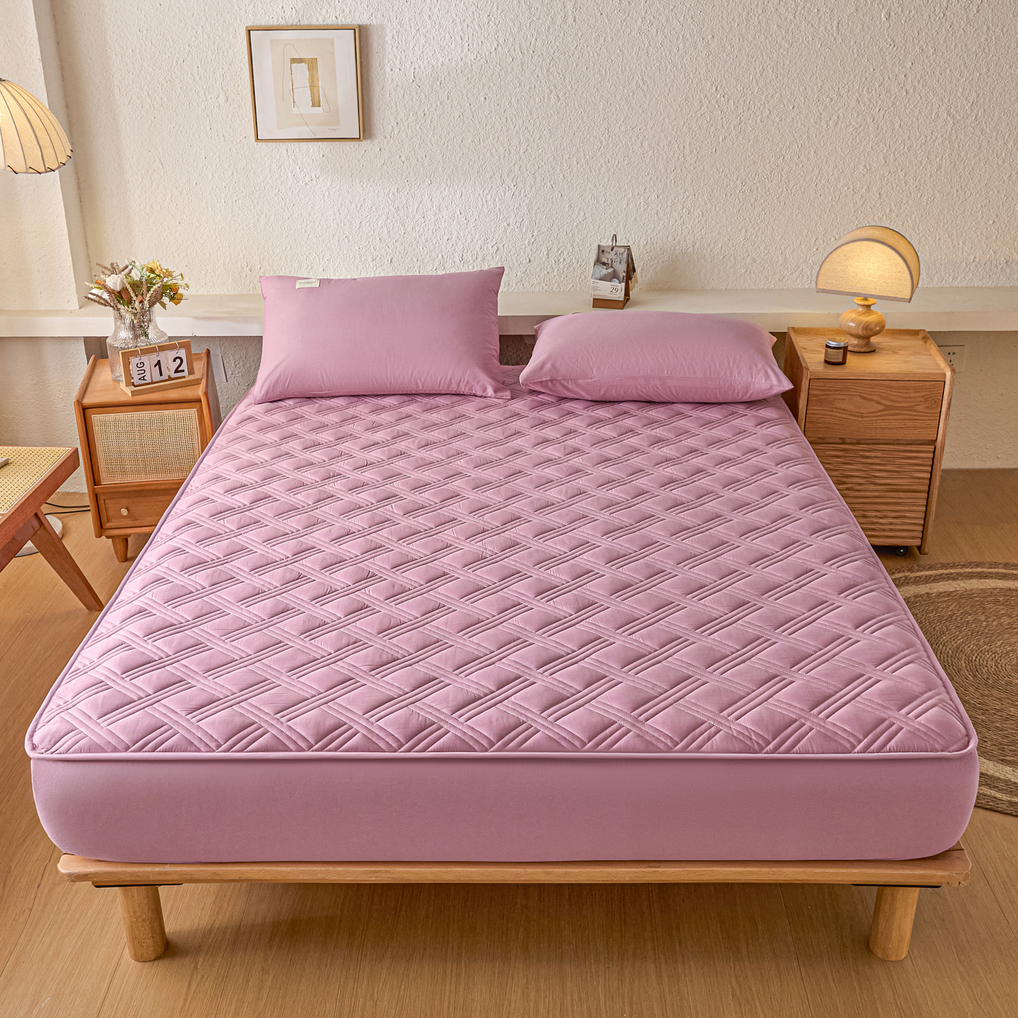 衿成家纺 2025新款全棉夹棉单床笠床笠单件方格子 方格子-紫粉