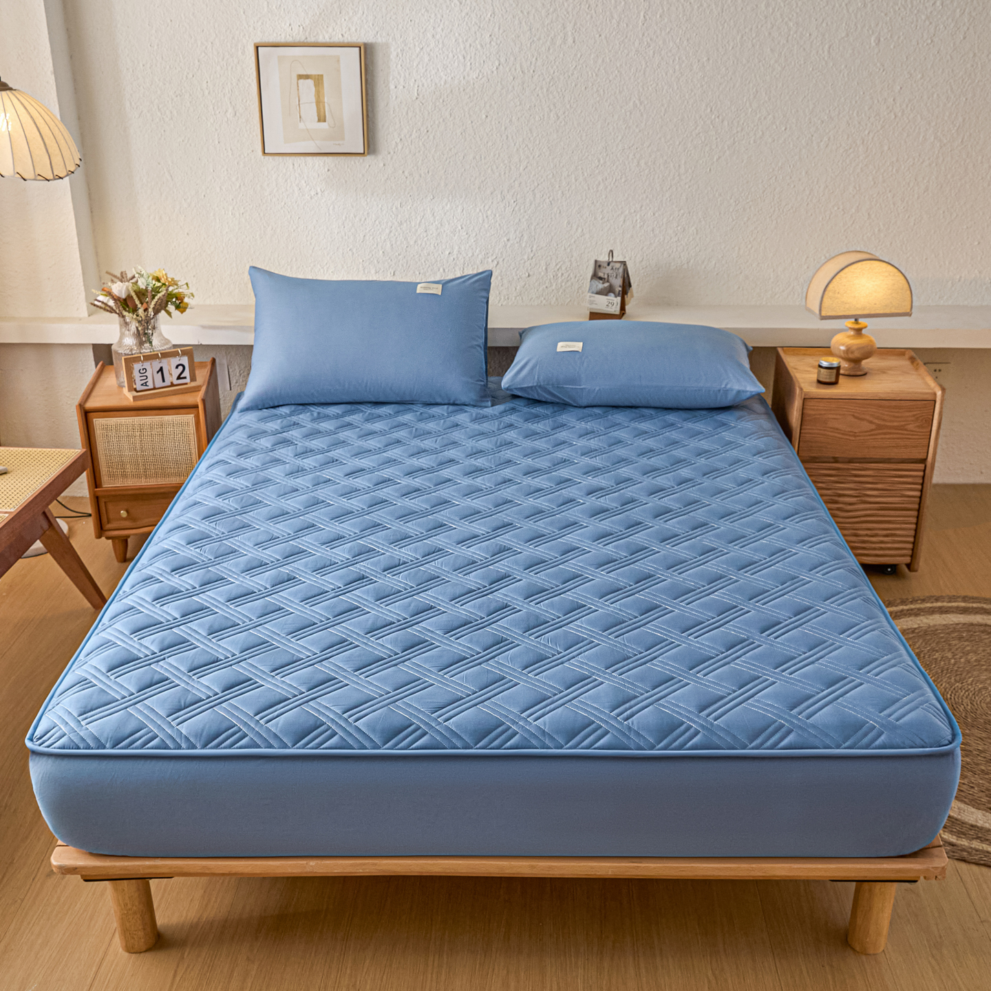 (总)衿成家纺 13372全棉喷起制造抗菌夹棉床笠,宝石蓝,典雅白,粉色,千草,浅灰,紫粉