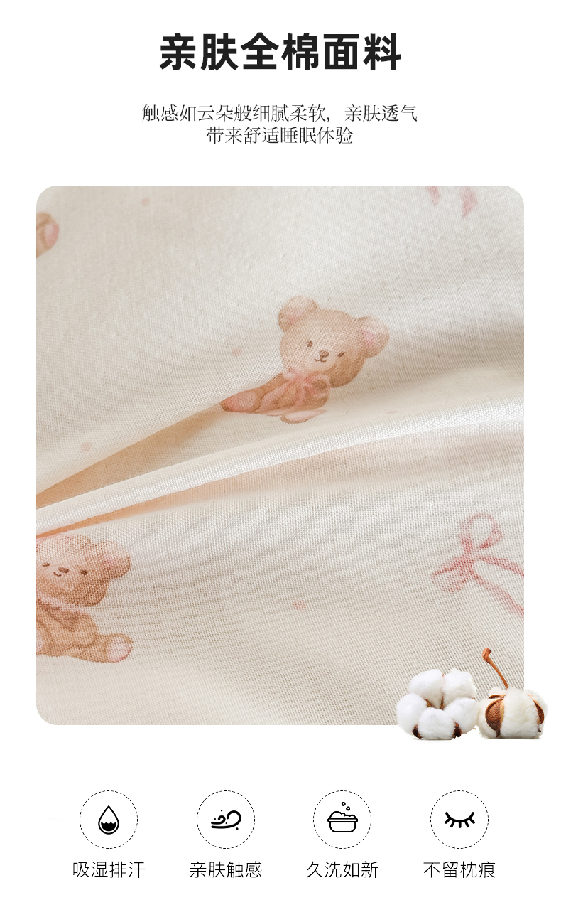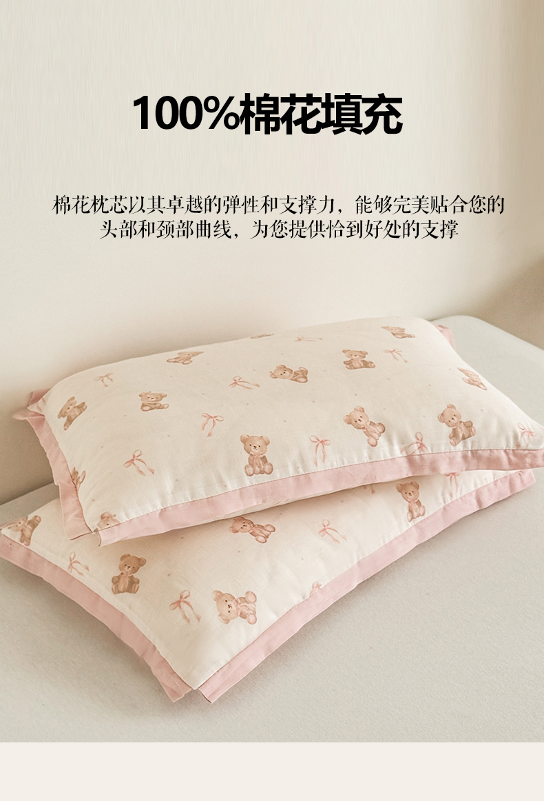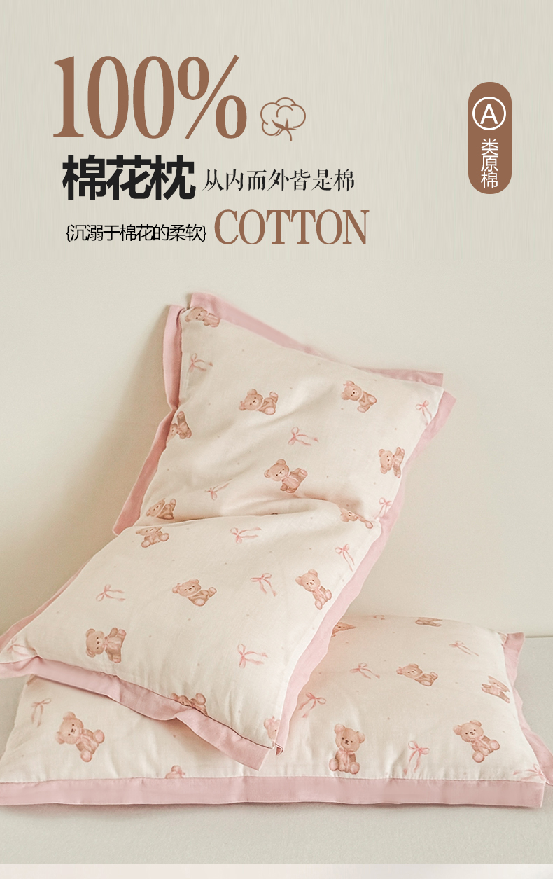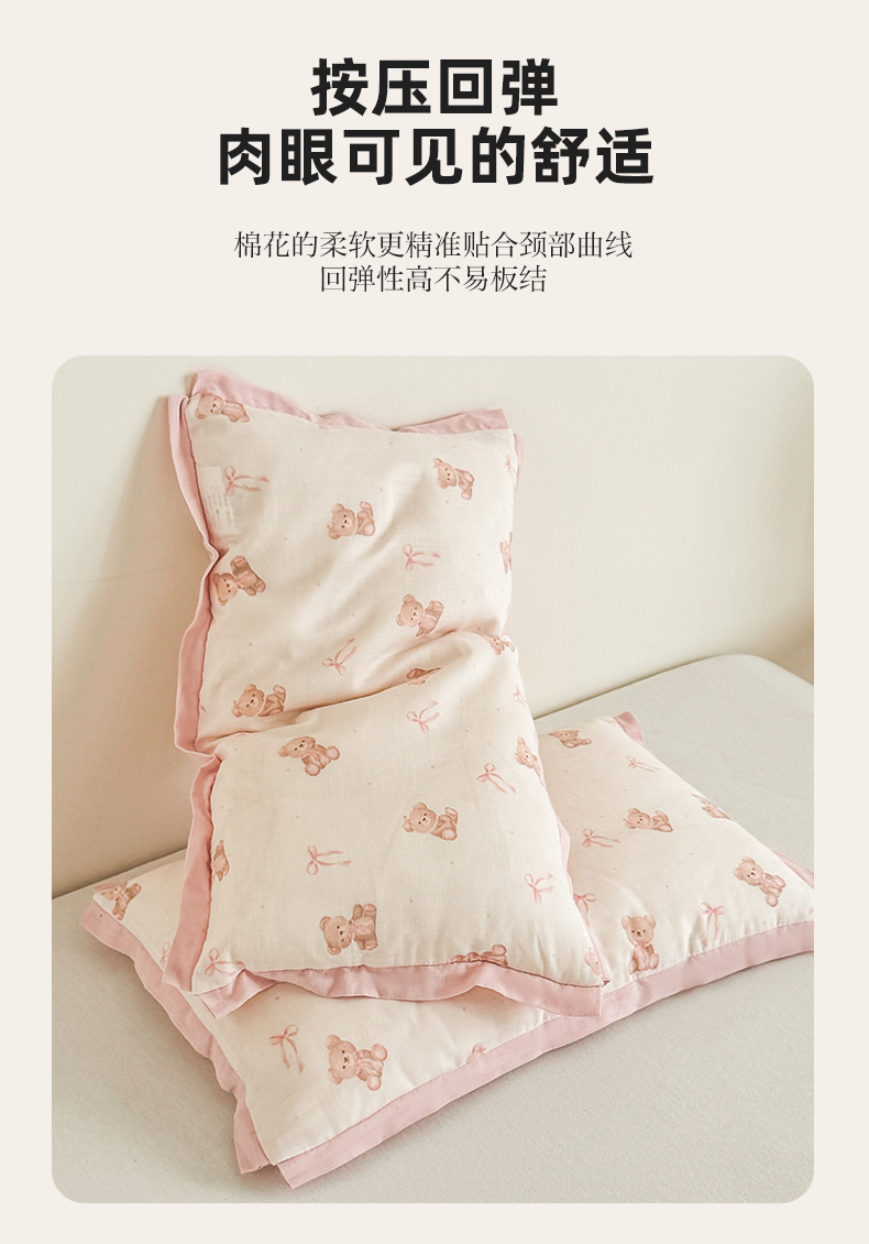 商品名称:贵夫人 2025新款卡通儿童100%纯棉花枕 枕头枕芯 小熊甜心儿童一对