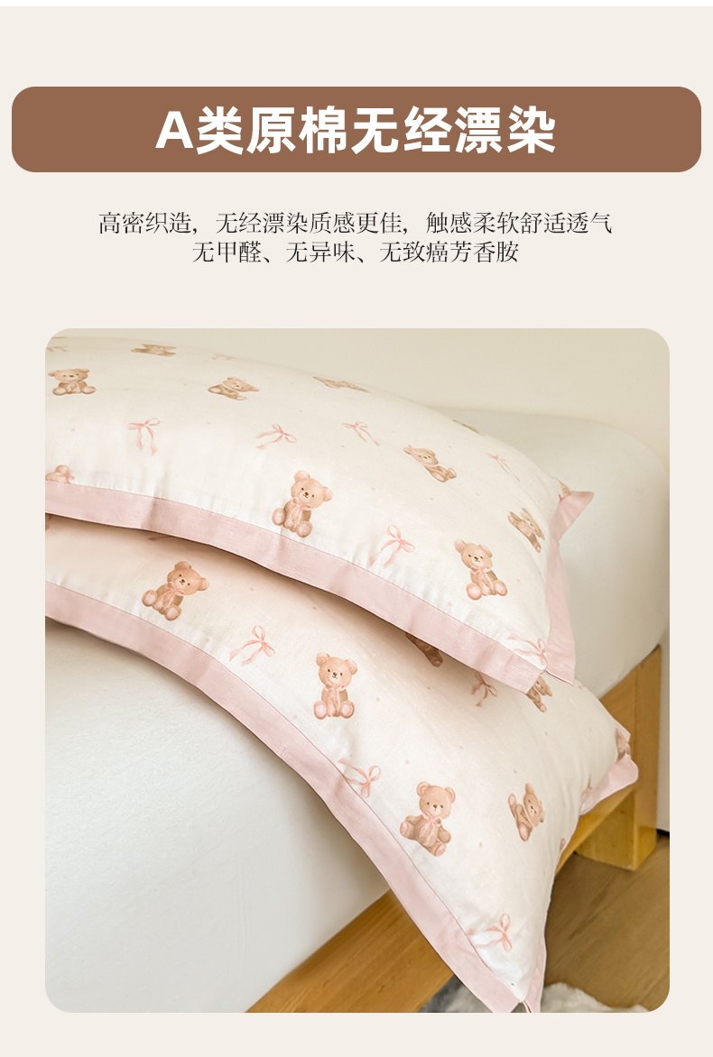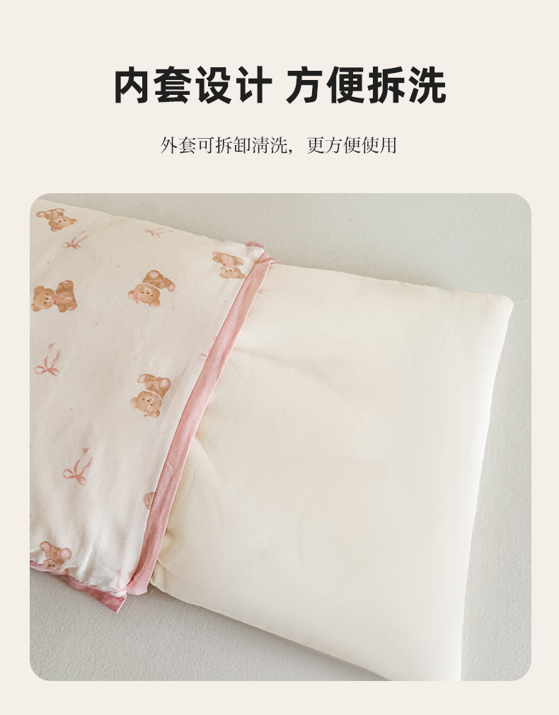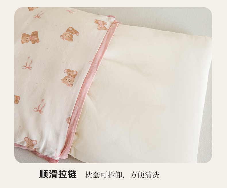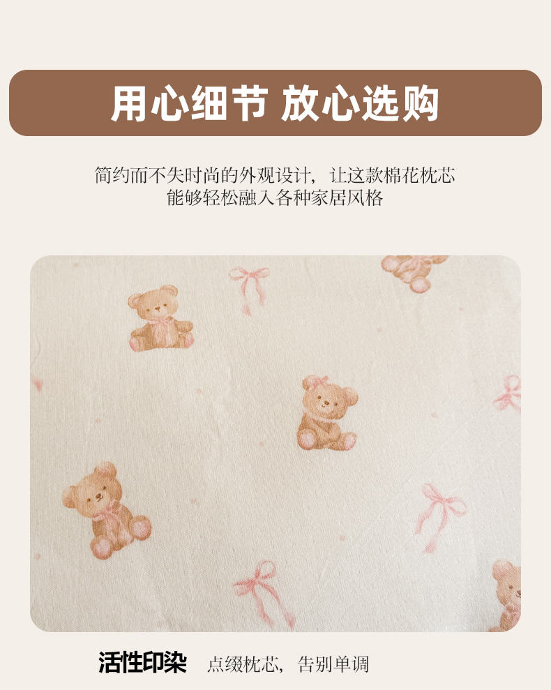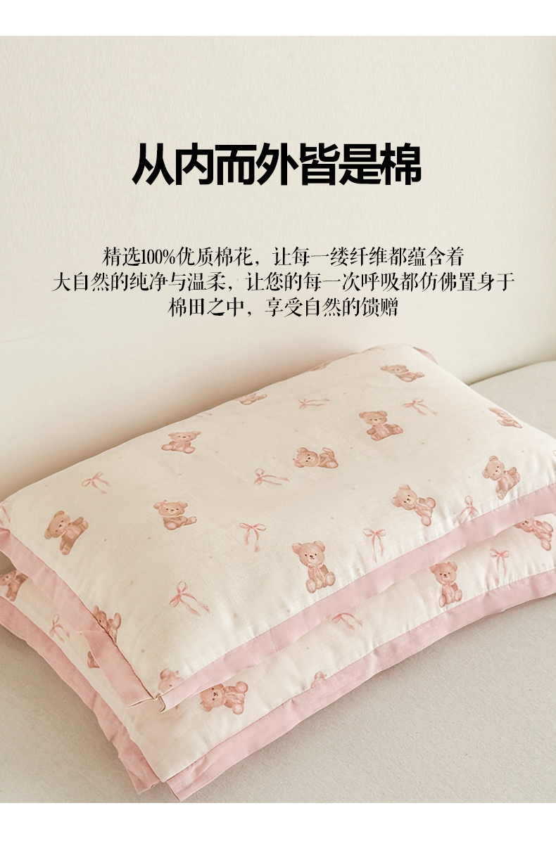 商品名称:贵夫人 2025新款卡通儿童100%纯棉花枕 枕头枕芯 小熊甜心儿童一对