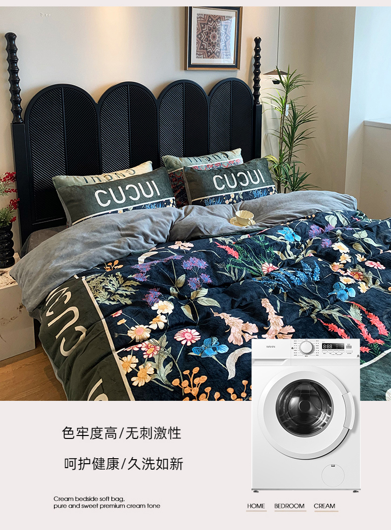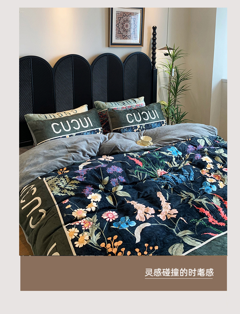 当前位置: 91家纺网 > 商品网购 > 床品套件 > 四件套 > 牛奶绒四件套 > 花沐家居 2025新款亲肤舒适潮牌数码印花牛奶绒四件套 黑色爱心