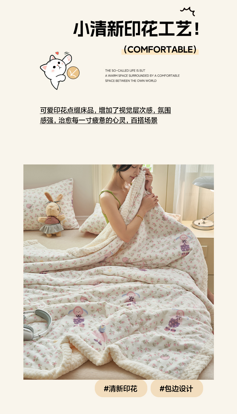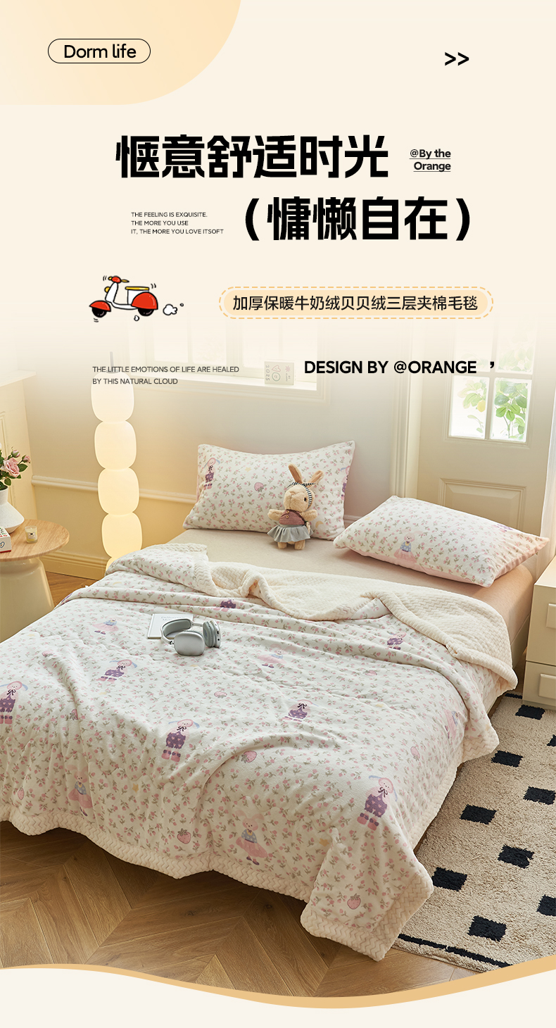 商品名称:晨曦家纺 2025新款加厚保暖牛奶绒贝贝绒三层夹棉毛毯可爱卡通 组合