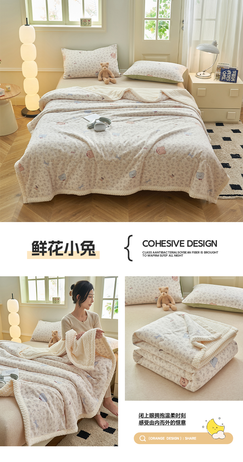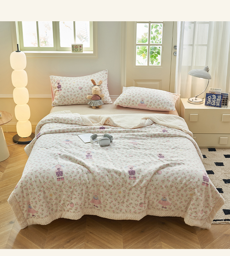 晨曦家纺 2025新款加厚保暖牛奶绒贝贝绒三层夹棉毛毯可爱卡通 组合