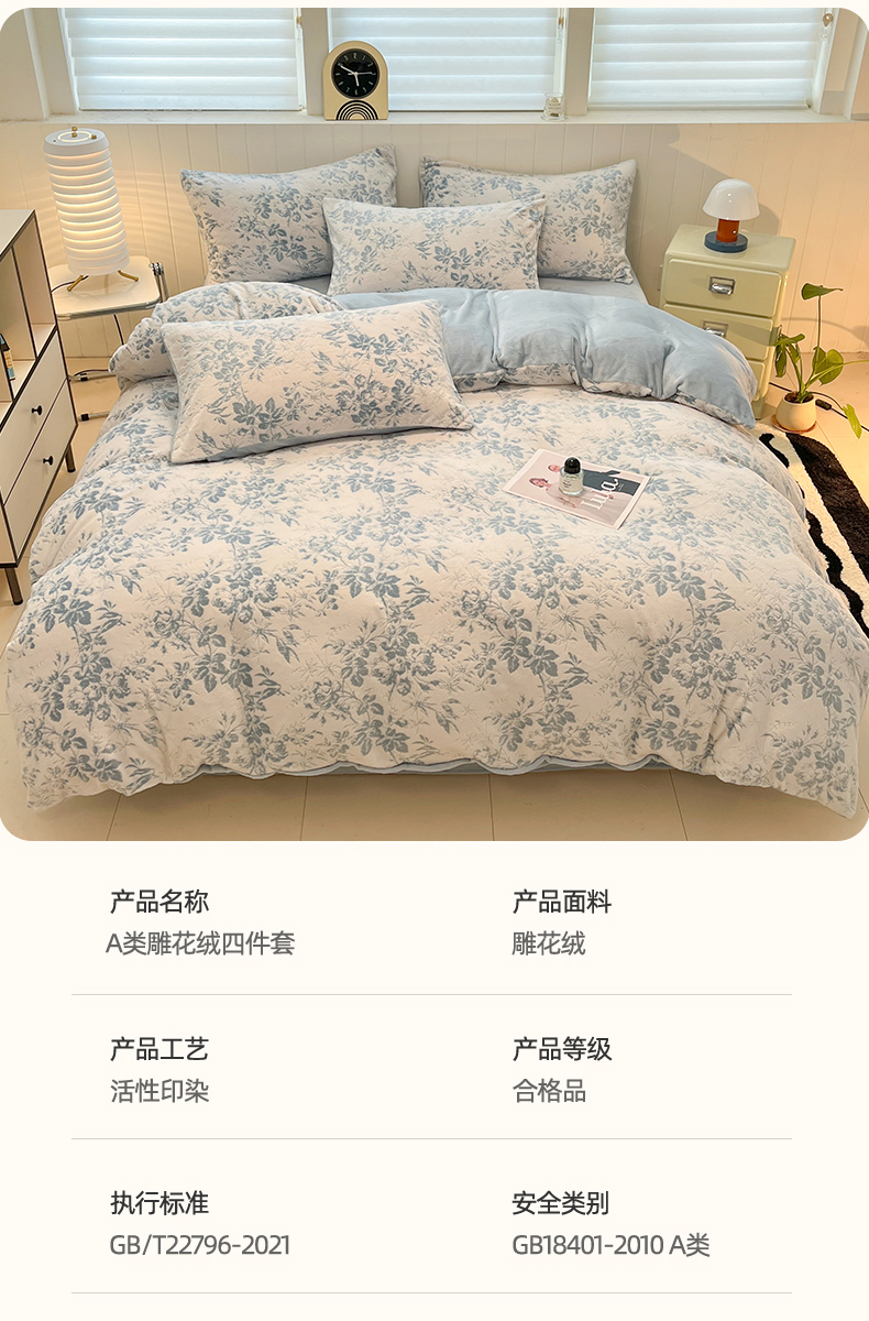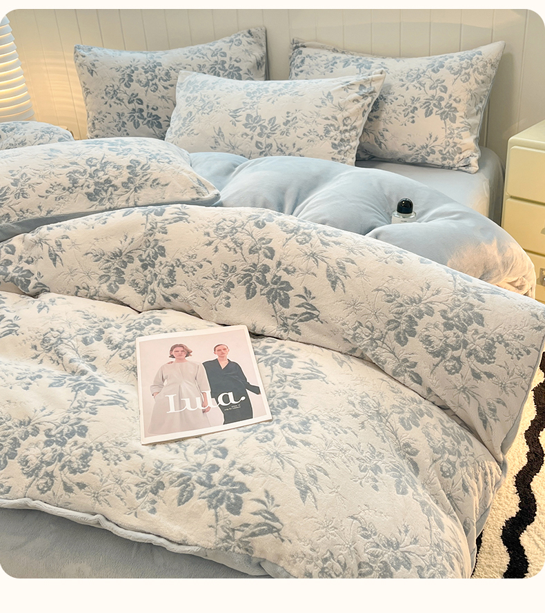 当前位置: 91家纺网 > 商品网购 > 床品套件 > 四件套 > 牛奶绒四件套 > 星座 2025新款牛奶绒雕花绒四件套 蓝蔓花叙