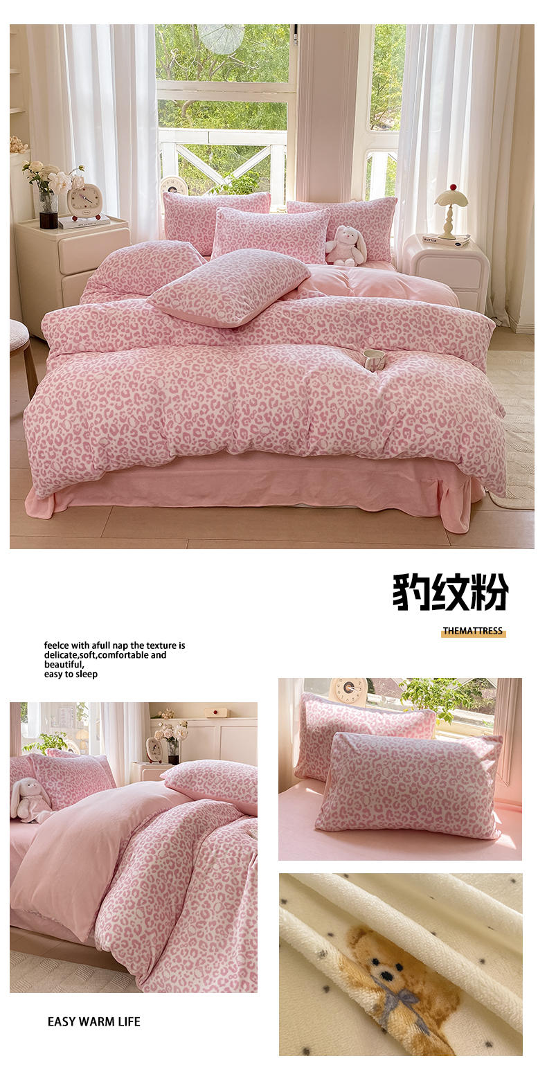 豫见家纺 2025新款牛奶绒印花四件套 豹纹棕