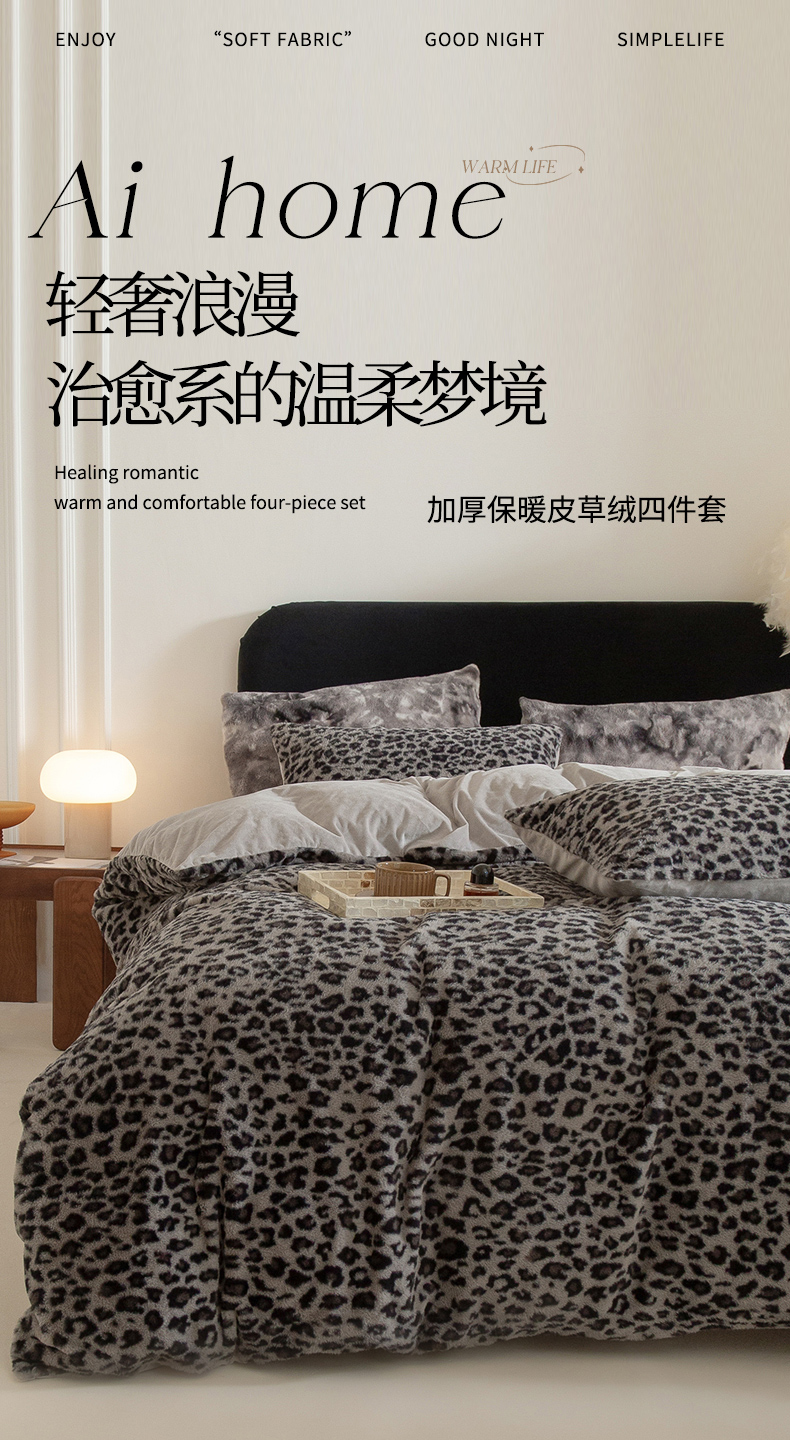 当前位置: 91家纺网 > 商品网购 > 床品套件 > 四件套 > 其它四件套 > ONE TWO ONE 121 2025新款轻奢加厚保暖皮草绒四件套 豹纹黑金