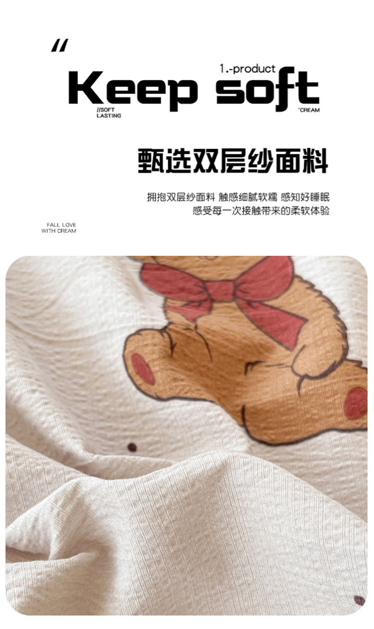 (总)维娜斯家纺 2025新款印花双层纱四件套亲肤柔软适合裸睡,欢度节日,欢乐猫咪,奶油草莓,森林派对,甜心派对,夏日盛果,小兔莉莉,小熊花园,小熊梦梦,悠然南山