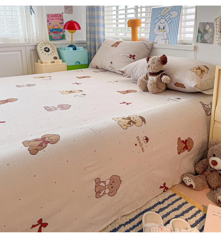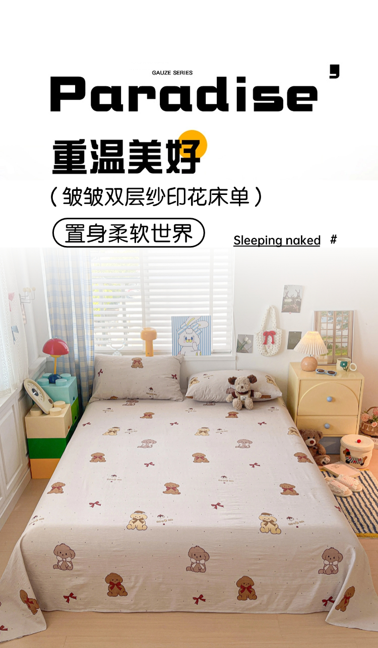 维娜斯家纺 2025新款A类水洗棉双层纱床单单件 甜心派对