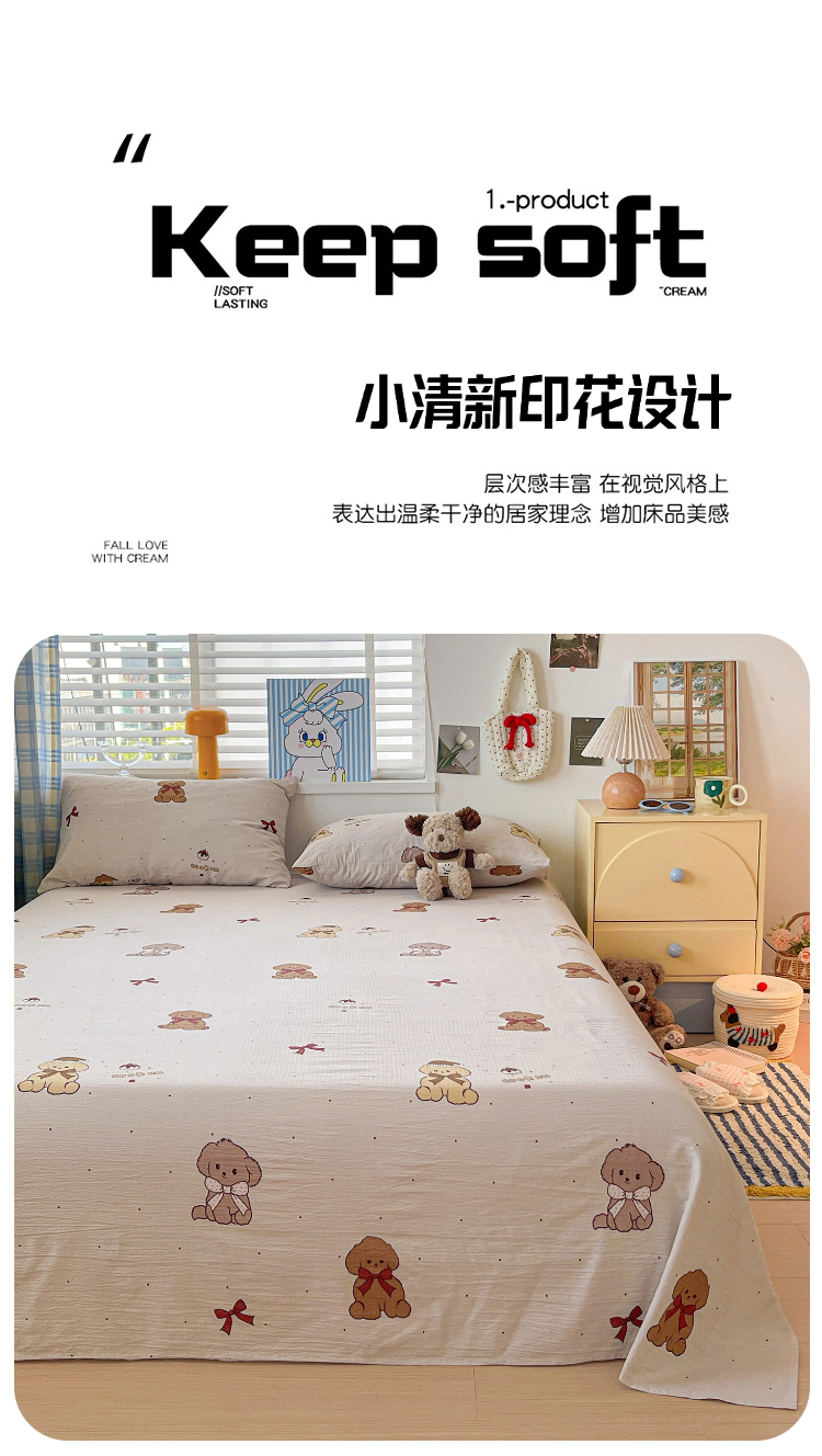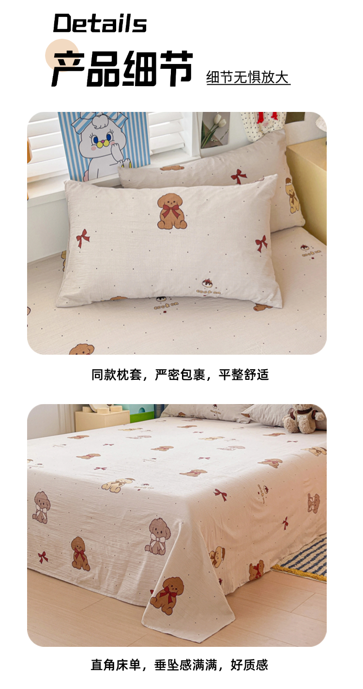 商品名称:维娜斯家纺 2025新款A类水洗棉双层纱床单单件 甜心派对