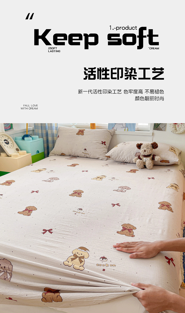 (总)维娜斯家纺 2025新款A类水洗棉双层纱床单单件,欢度节日,可爱猫咪,奶油草莓,森林派对,甜心派对,夏日盛果,小兔莉莉,小熊花园,小熊梦梦,悠然南山