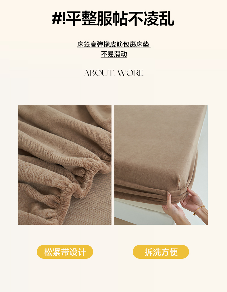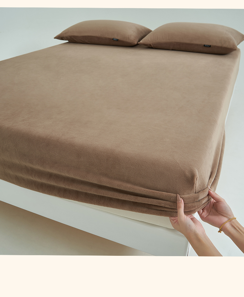 • 91家纺网 家纺一手货源 找家纺 寐绸家纺 2025新款牛奶绒纯色暖绒床笠 组合图