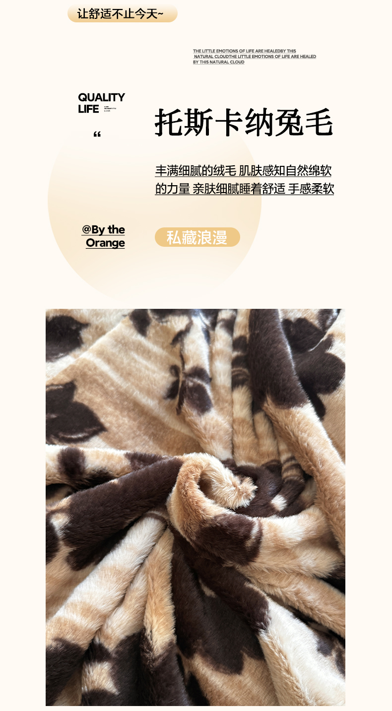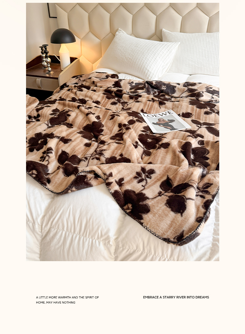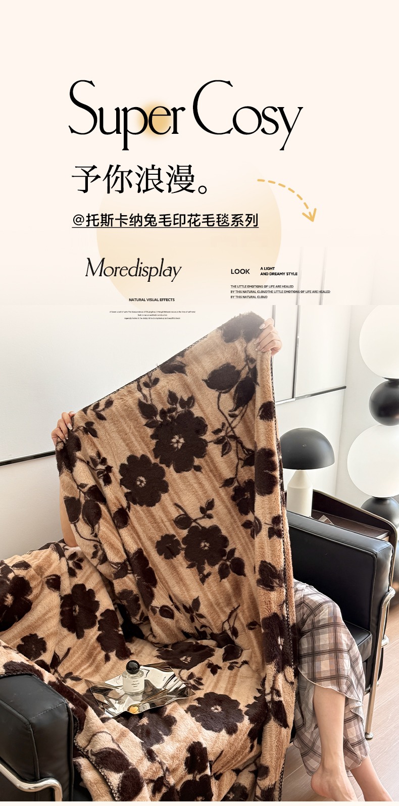 商品名称:澳萝拉 2025新款复古法式轻奢双面高克重托斯卡纳兔绒毯 兔眠-花枝