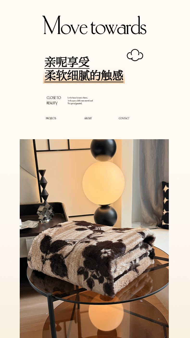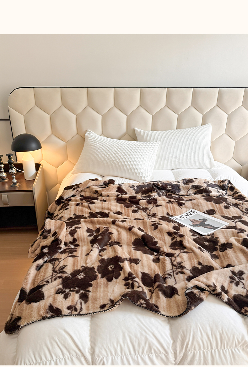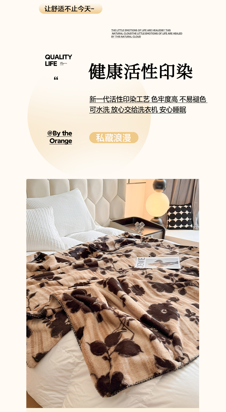 商品名称:澳萝拉 2025新款复古法式轻奢双面高克重托斯卡纳兔绒毯 兔眠-花枝