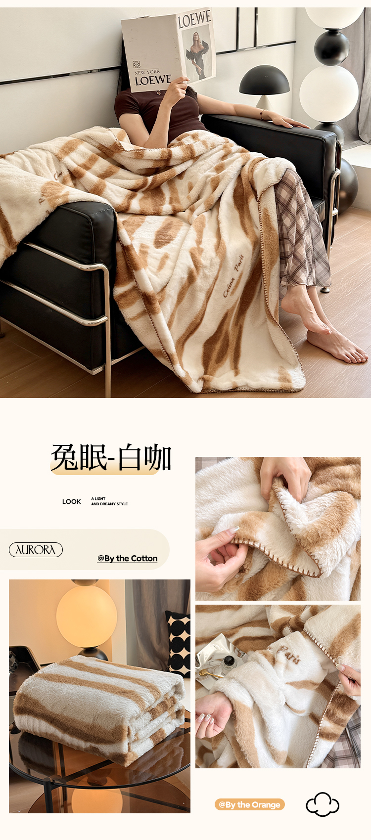 (总)澳萝拉 2025新款复古法式轻奢双面高克重托斯卡纳兔绒毯,兔眠-白咖,兔眠-花枝,兔眠-深咖
