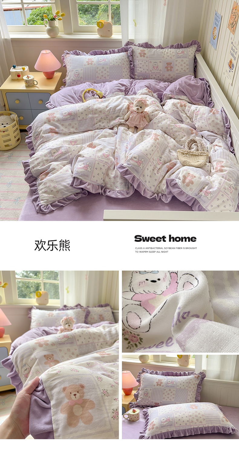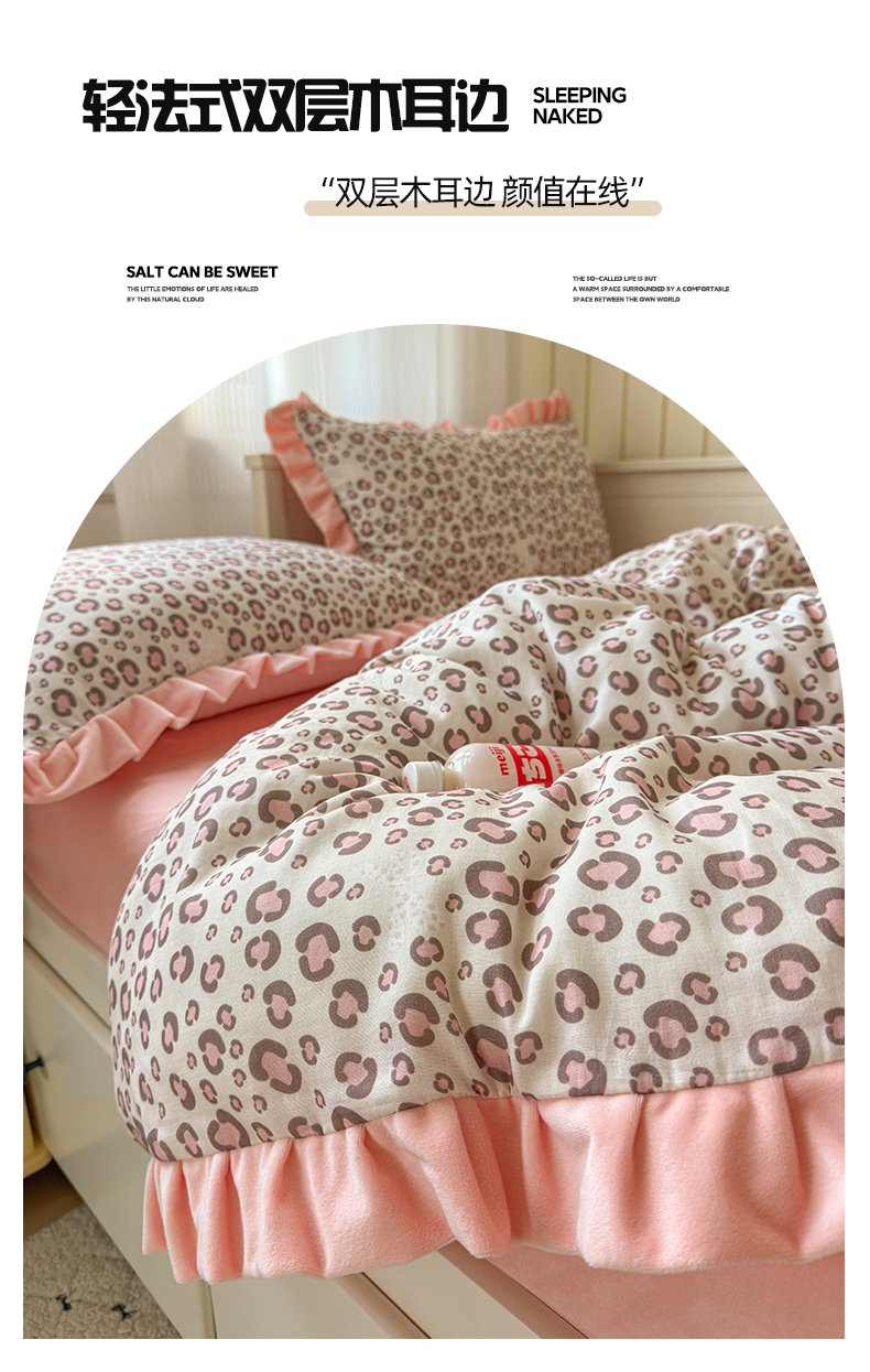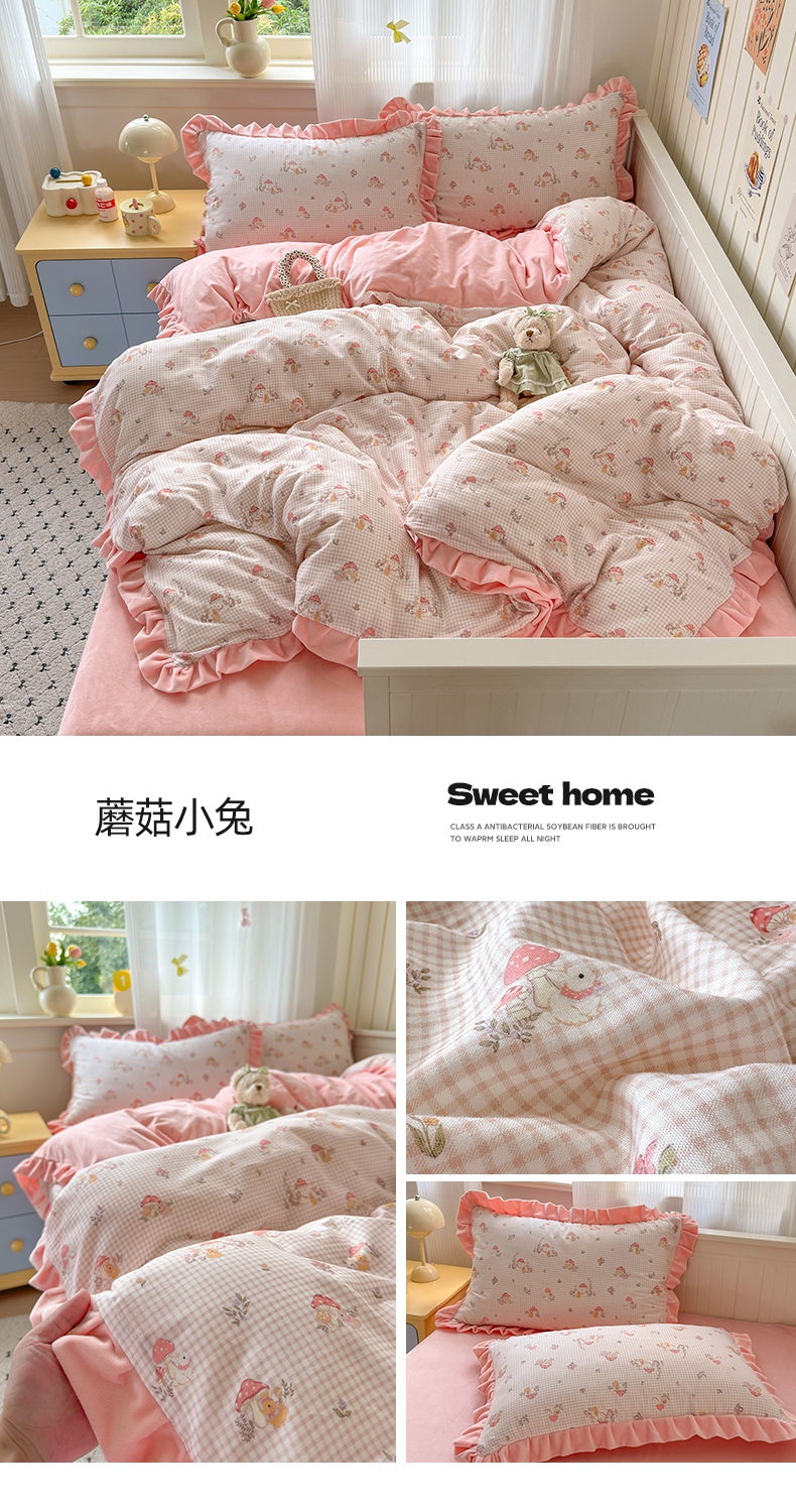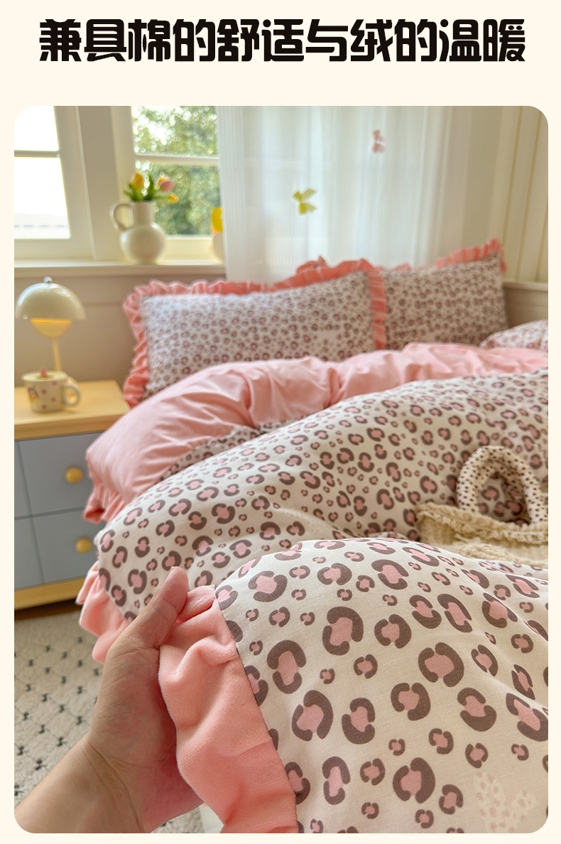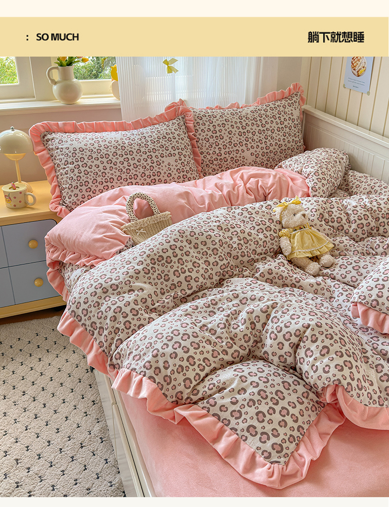 当前位置: 91家纺网 > 商品网购 > 床品套件 > 四件套 > 全棉普通四件套 > 淑女公社家纺 2025秋冬新款纯棉双层纱加韩国绒四件套 甜酷女孩 粉