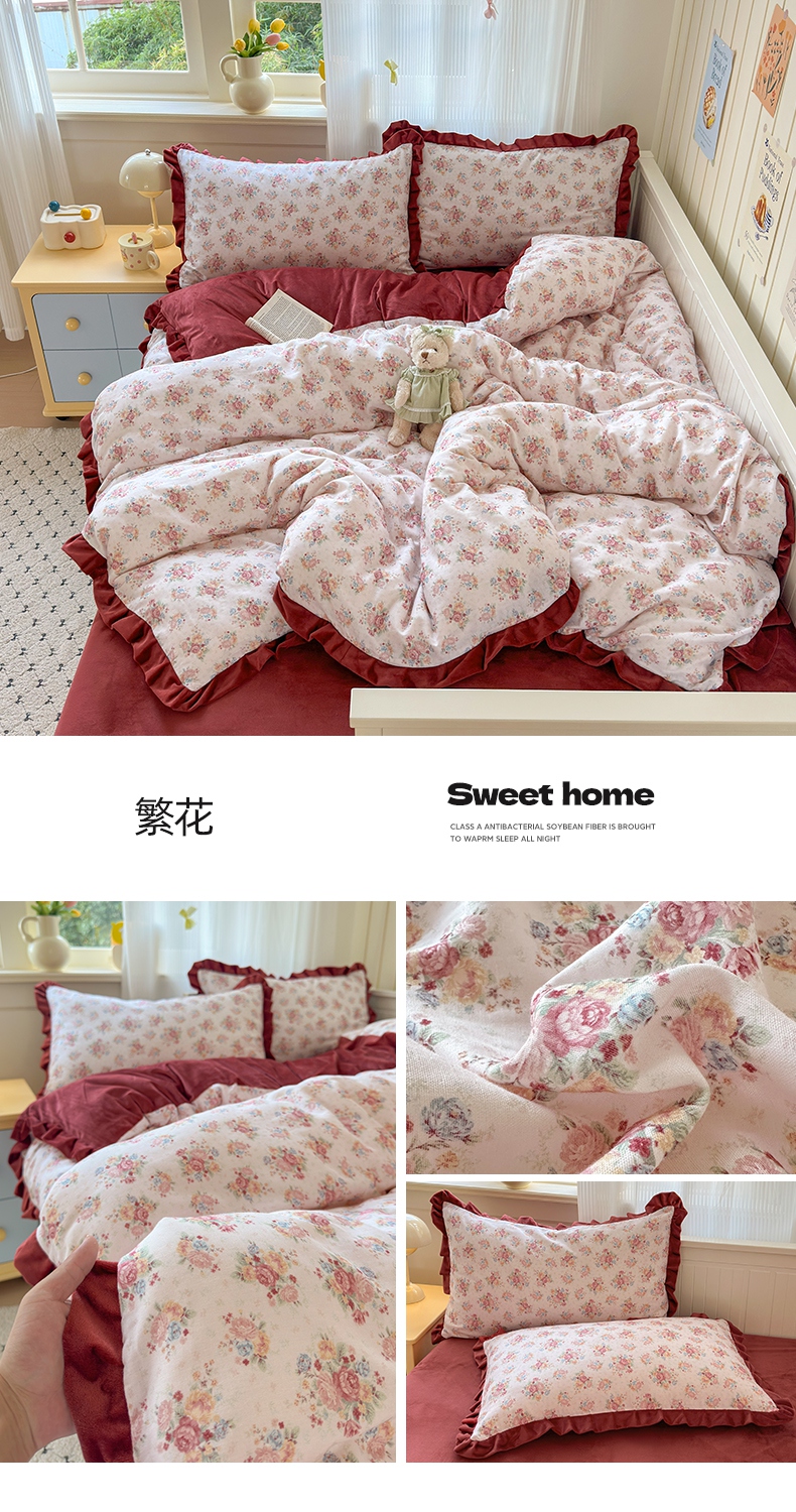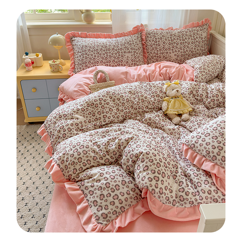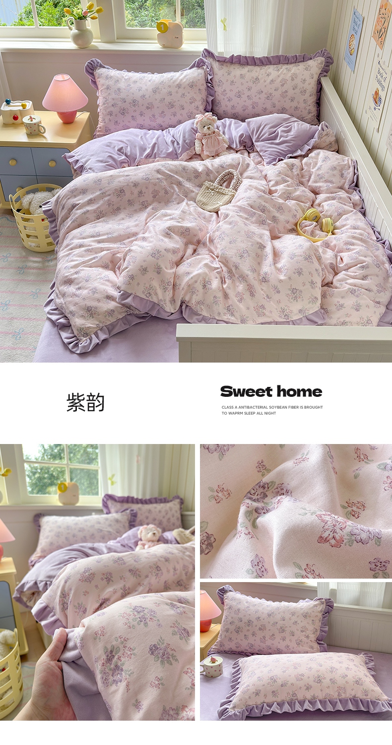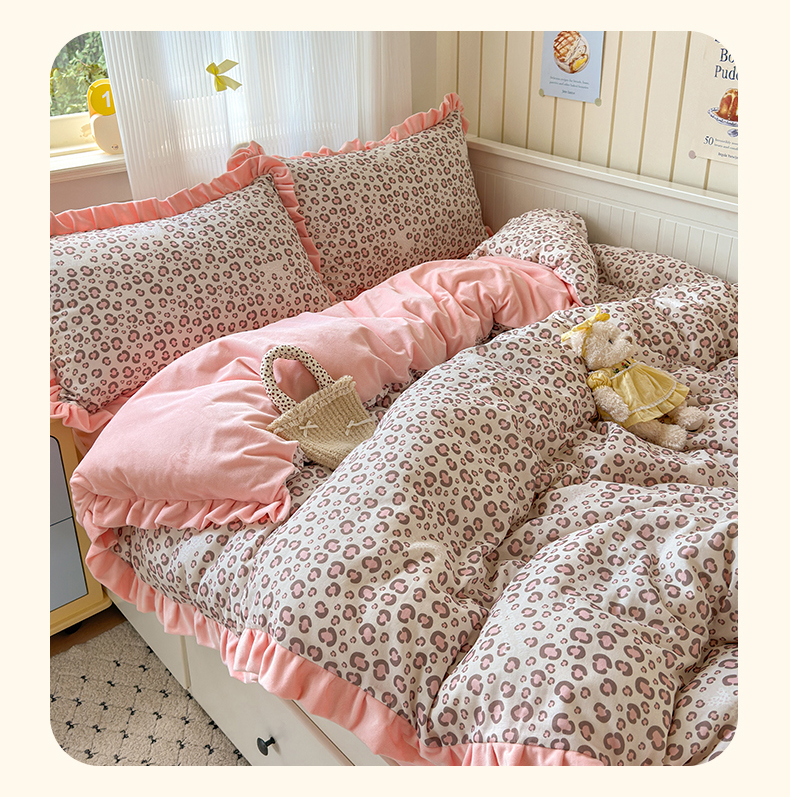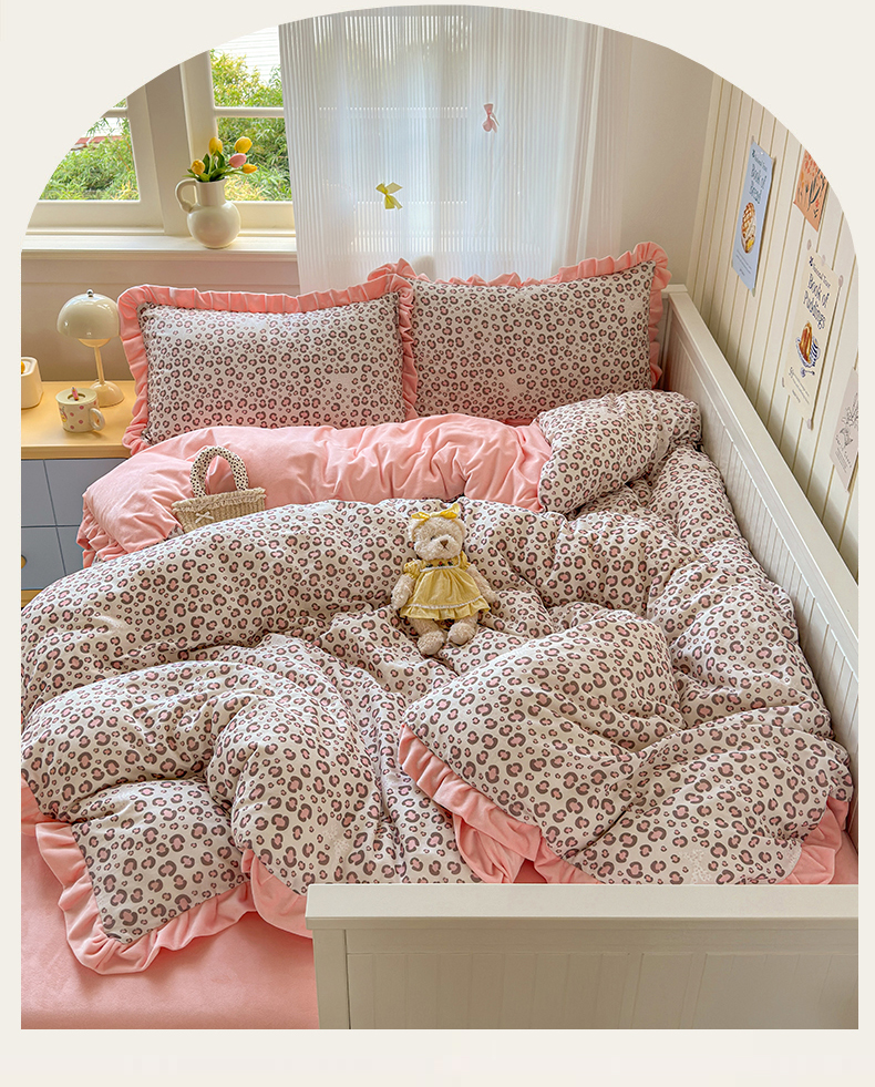 当前位置: 91家纺网 > 商品网购 > 床品套件 > 四件套 > 全棉普通四件套 > 淑女公社家纺 2025秋冬新款纯棉双层纱加韩国绒四件套 甜酷女孩 粉