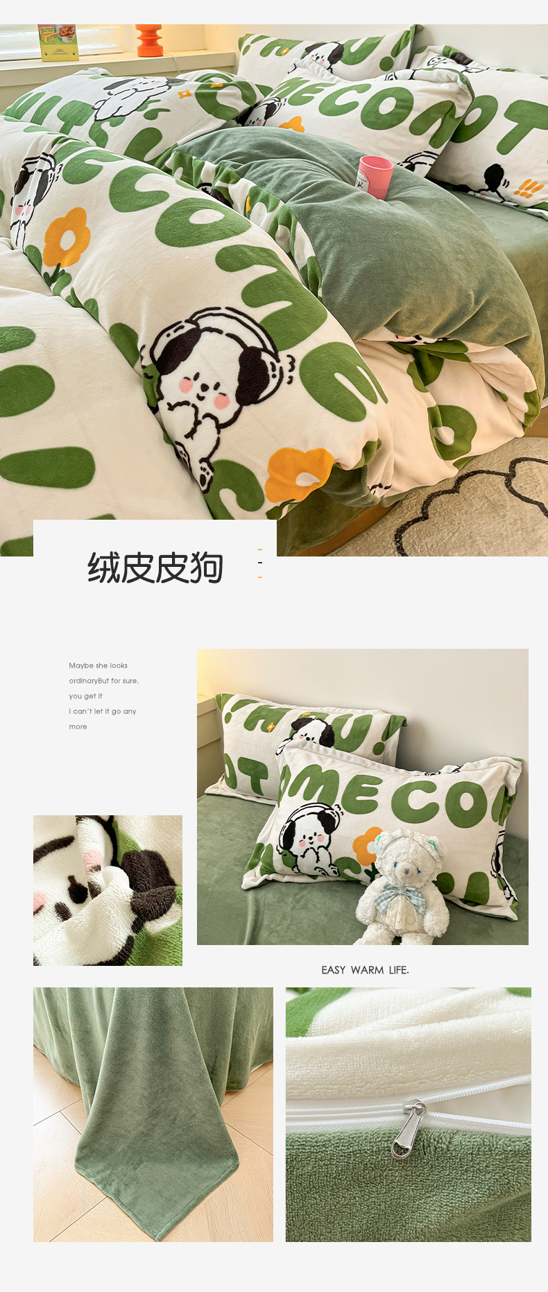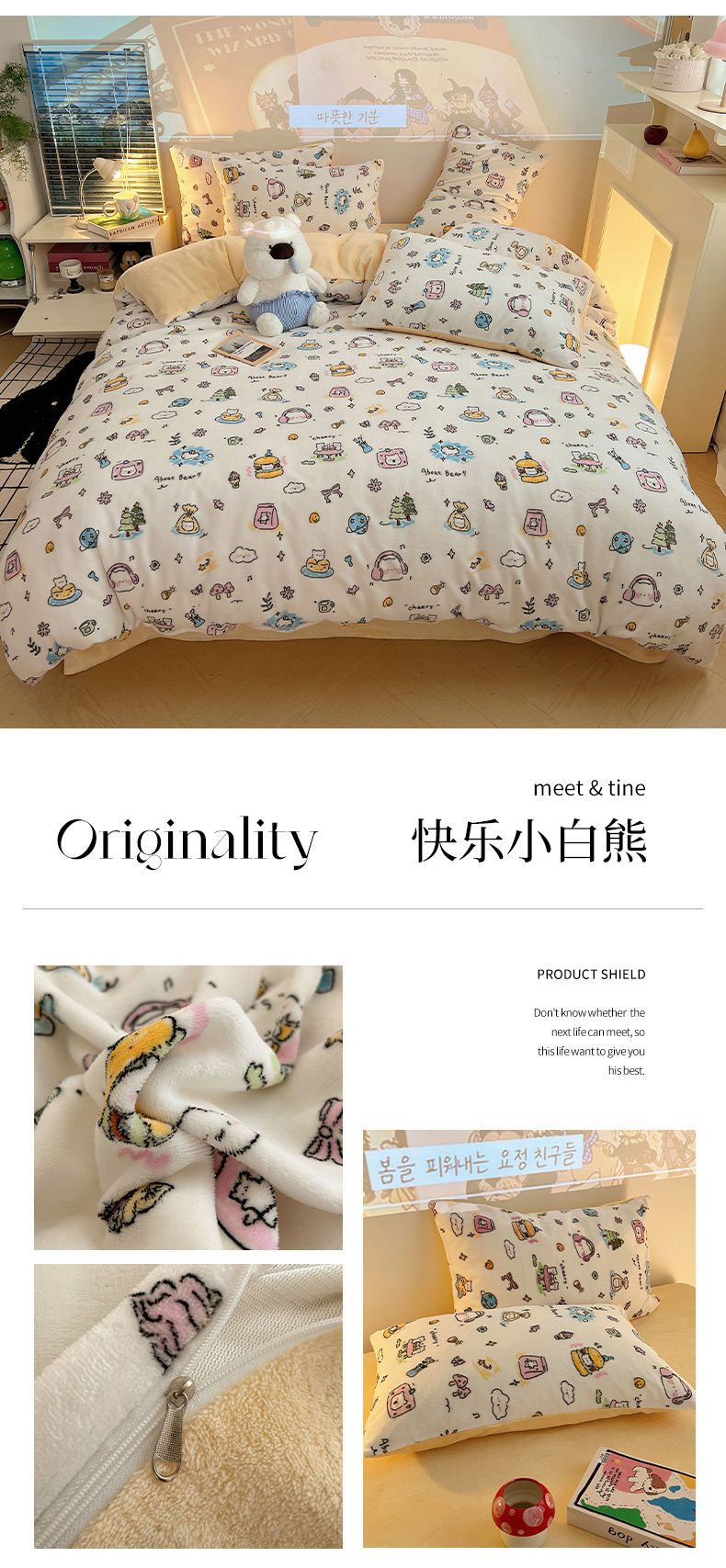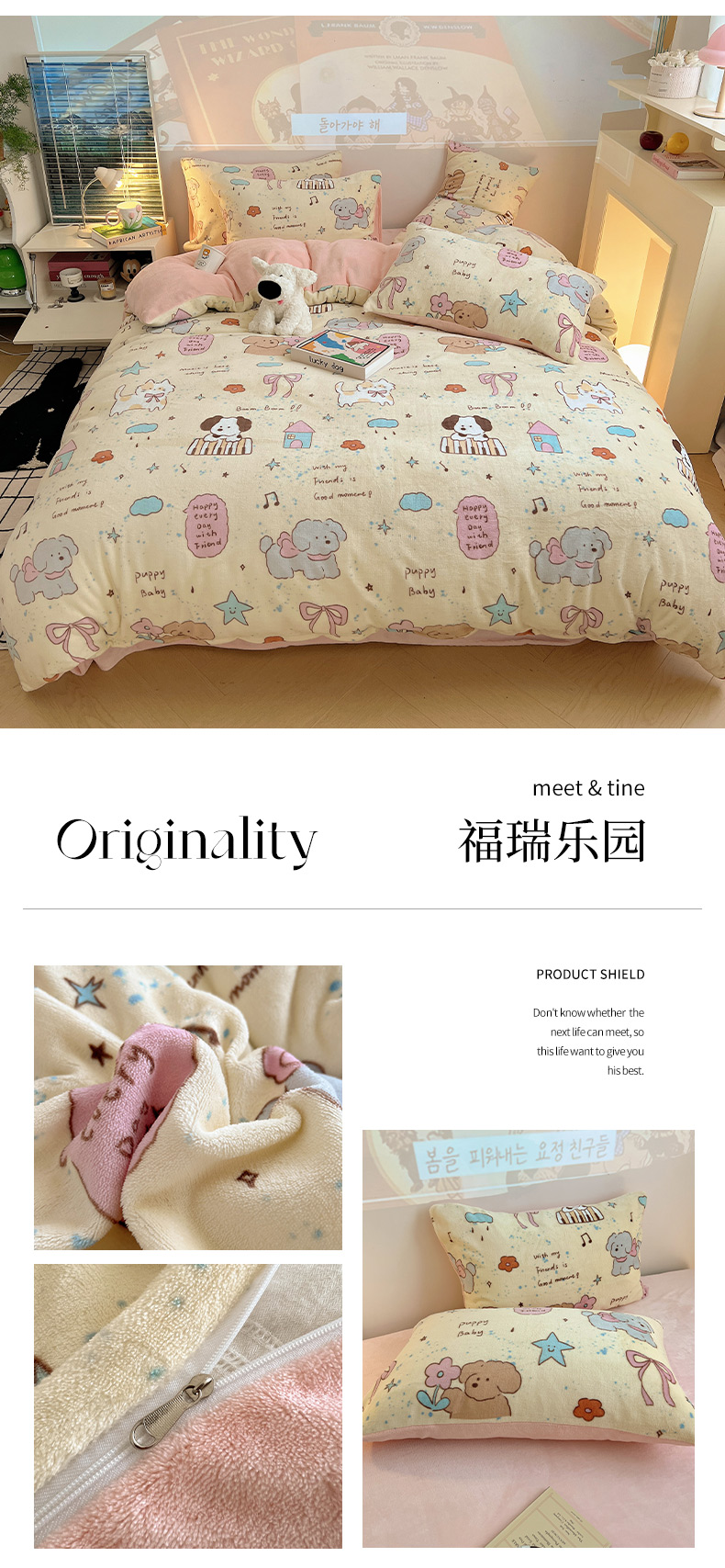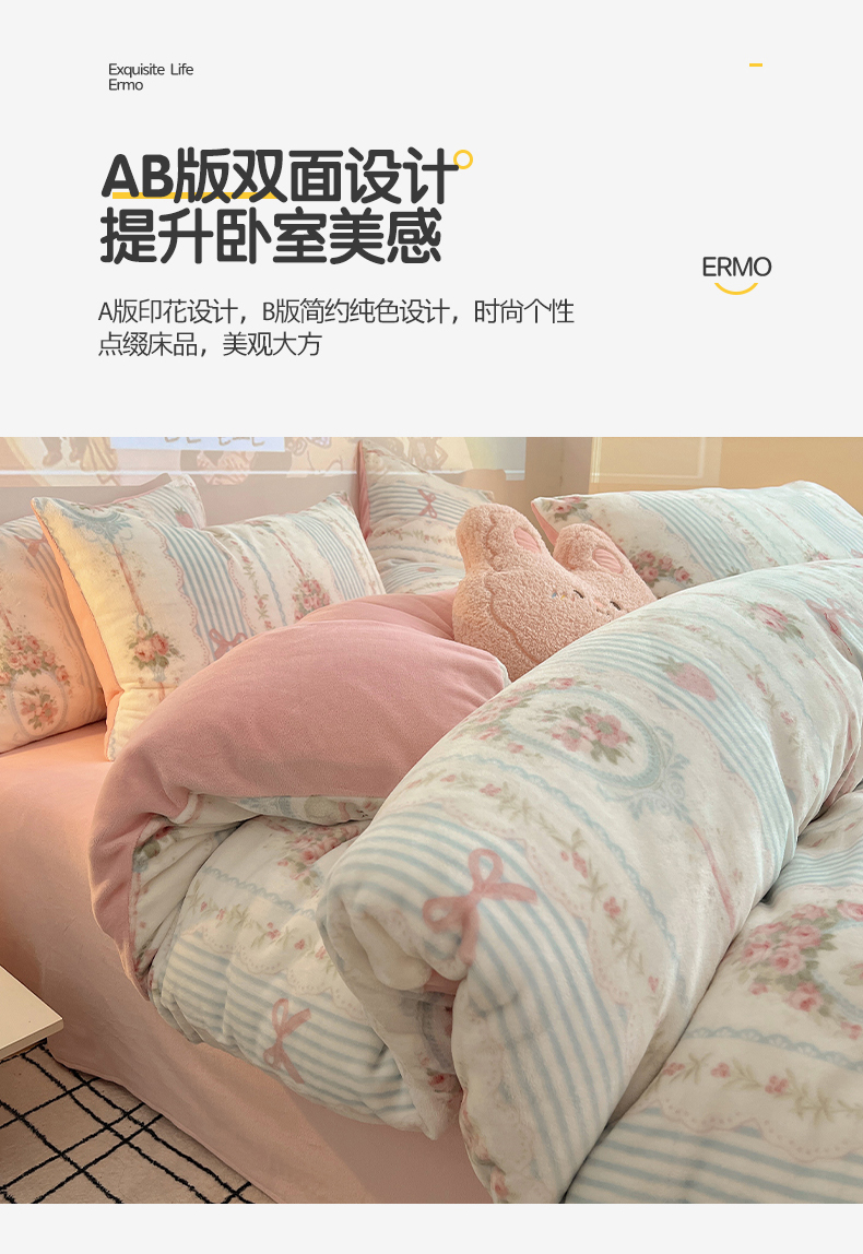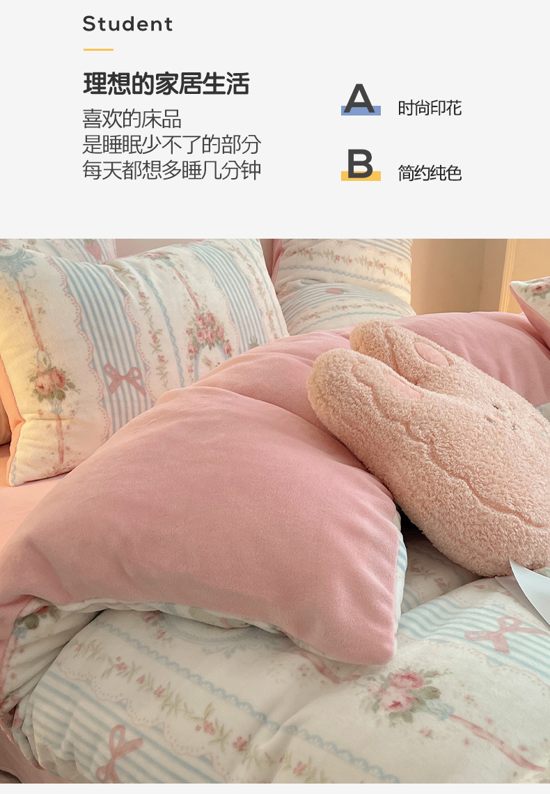 商品名称:瑞莱 2025新款A类200克高克重秋冬印花牛奶绒四件套-卡通系列 花环兔