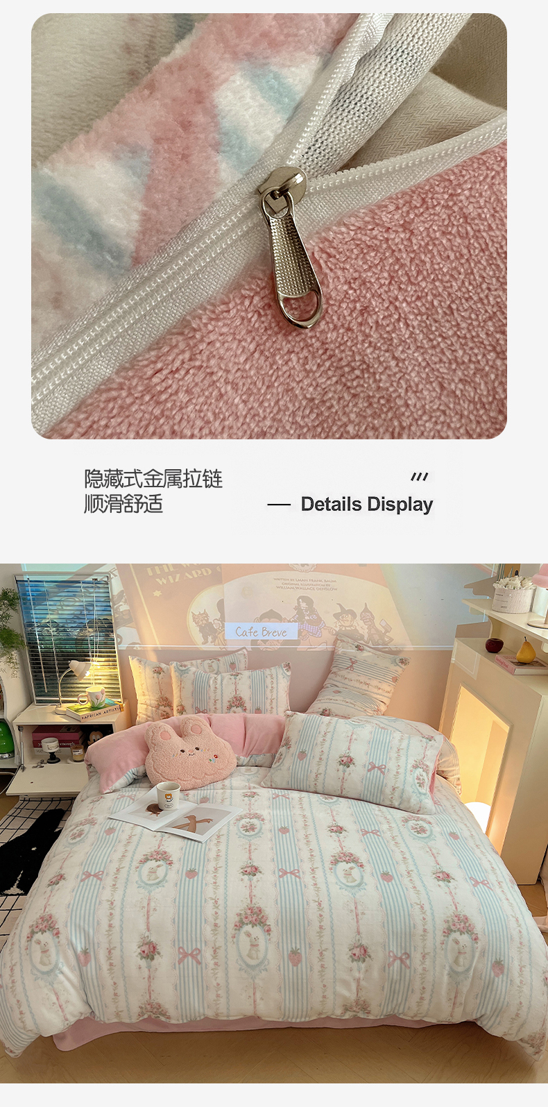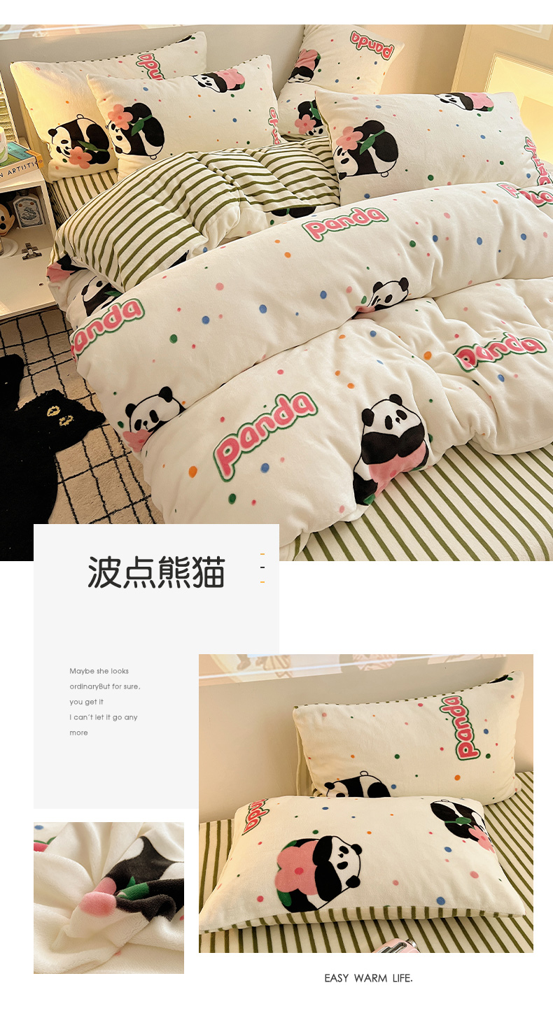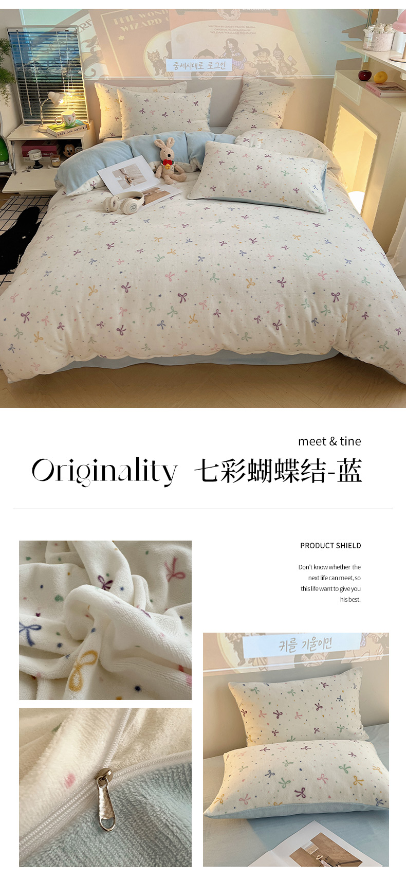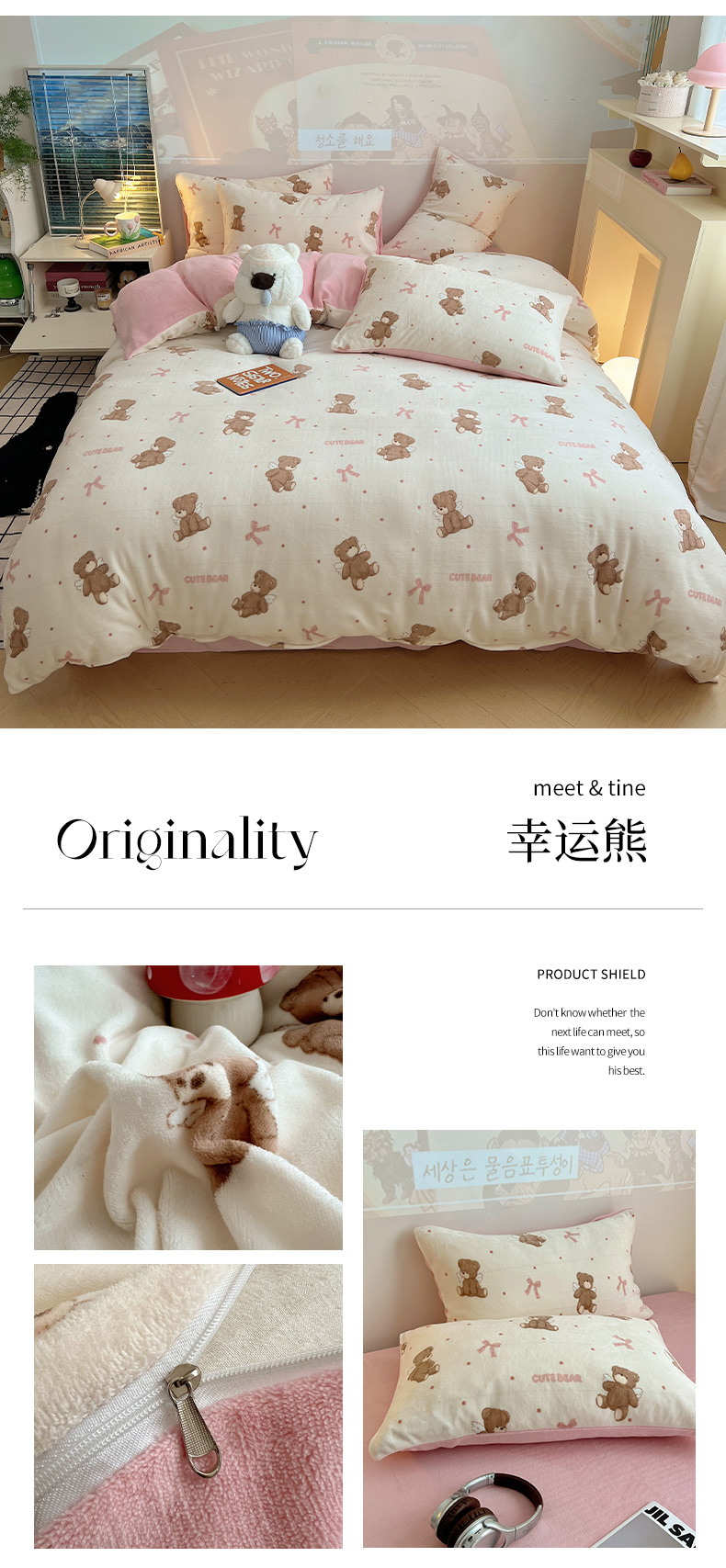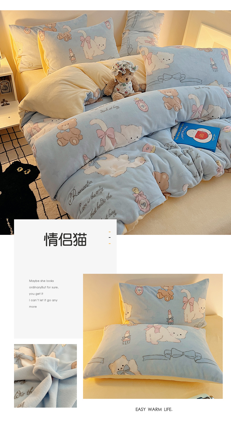 商品名称:瑞莱 2025新款A类200克高克重秋冬印花牛奶绒四件套-卡通系列 花环兔