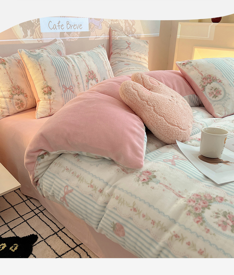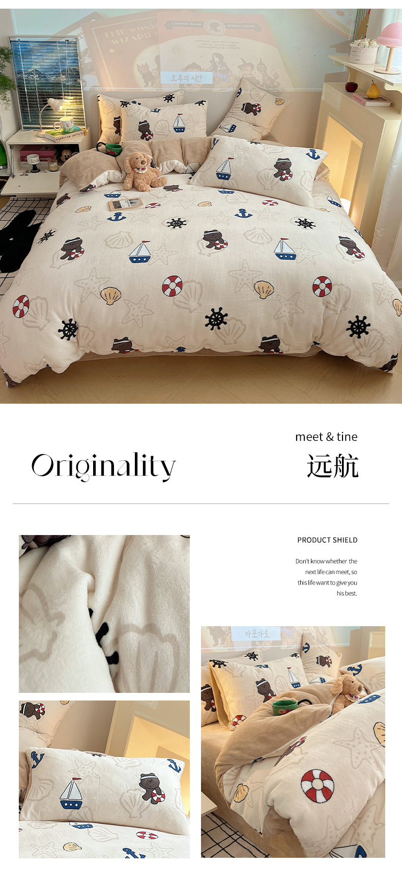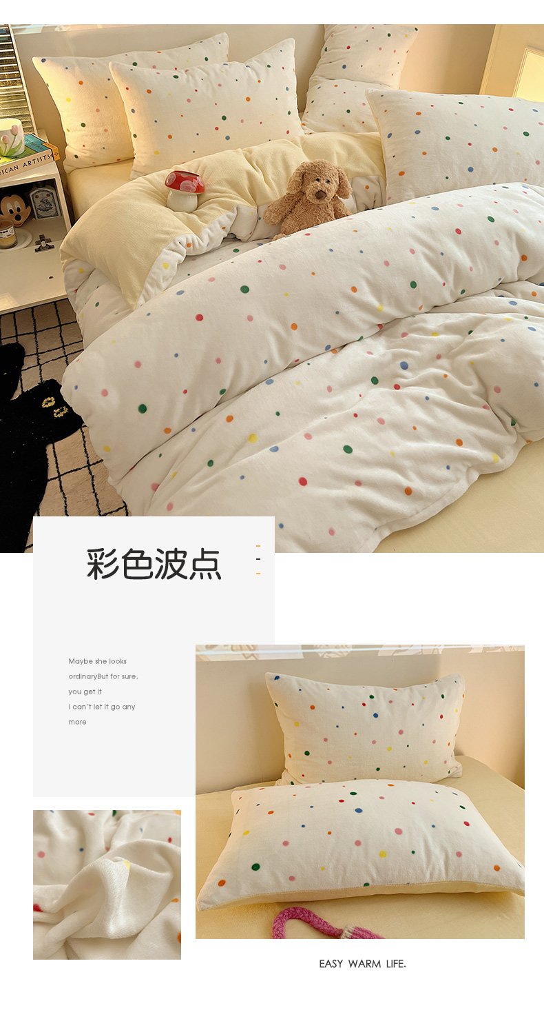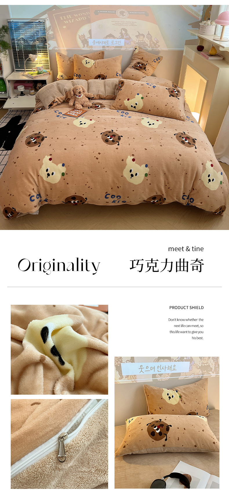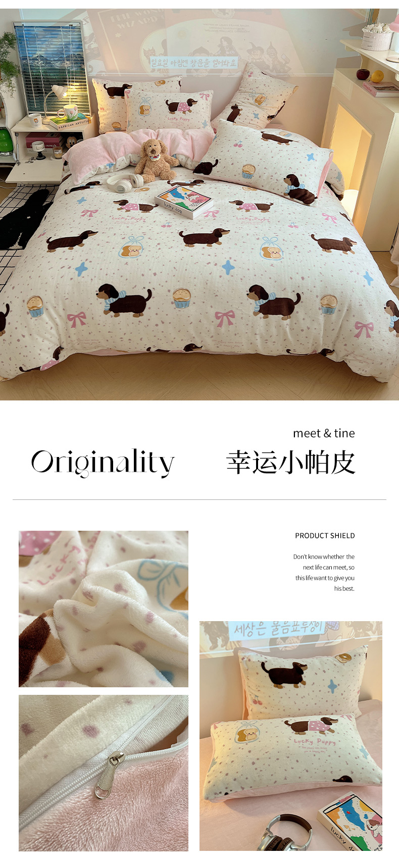 商品名称:瑞莱 2025新款A类200克高克重秋冬印花牛奶绒四件套-卡通系列 花环兔