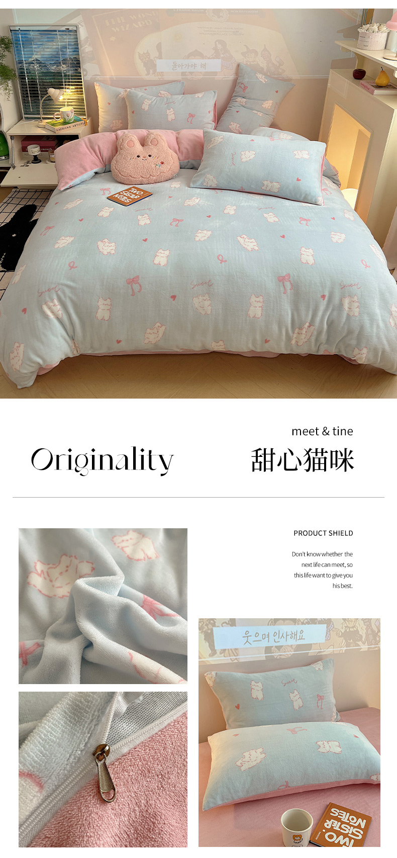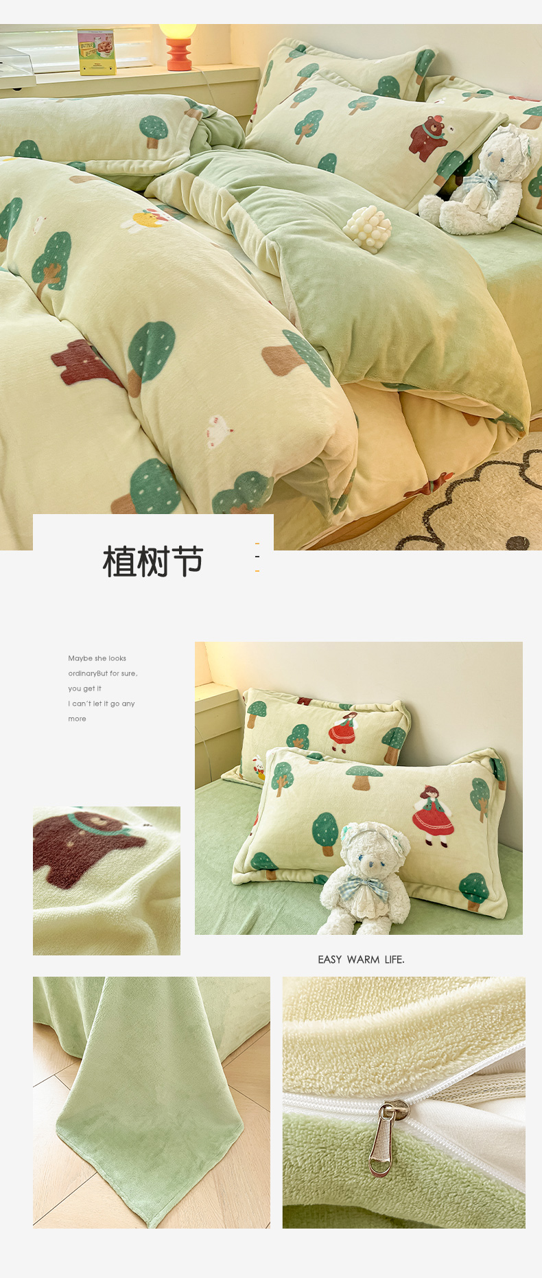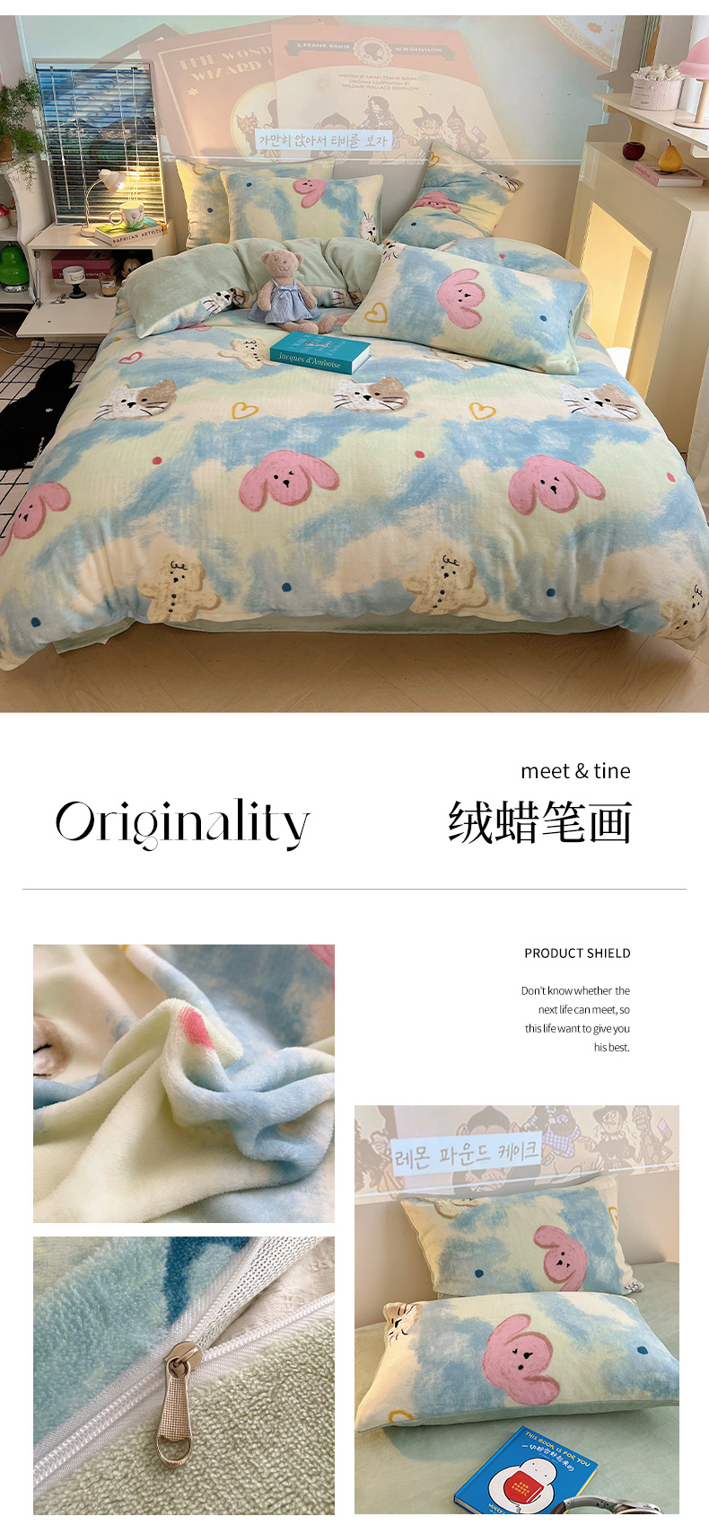 瑞莱 2025新款A类200克高克重秋冬印花牛奶绒四件套-卡通系列 花环兔