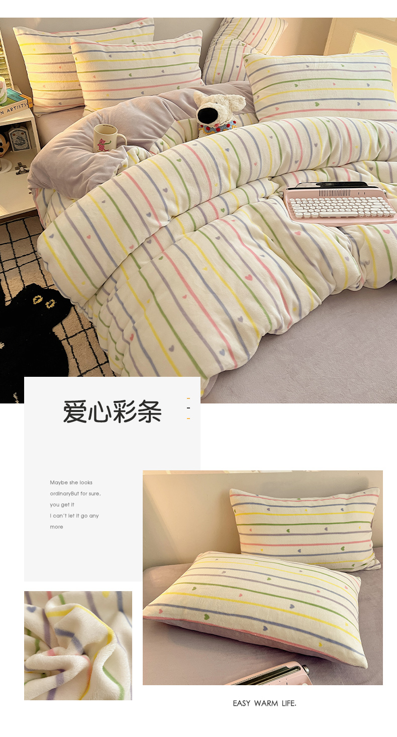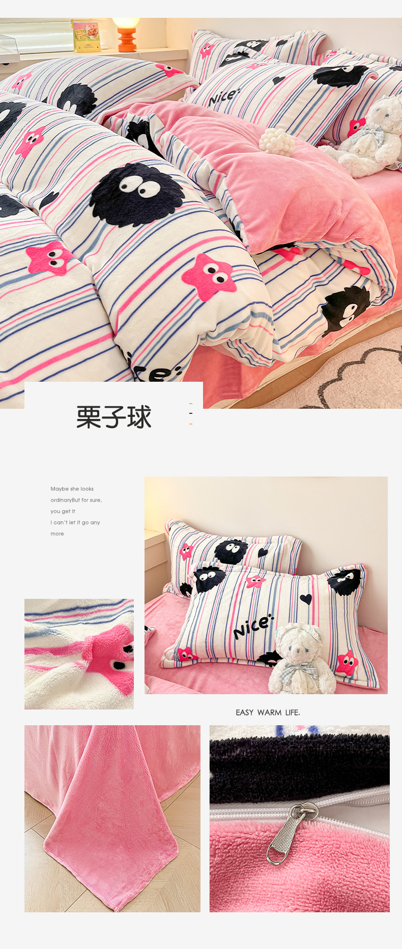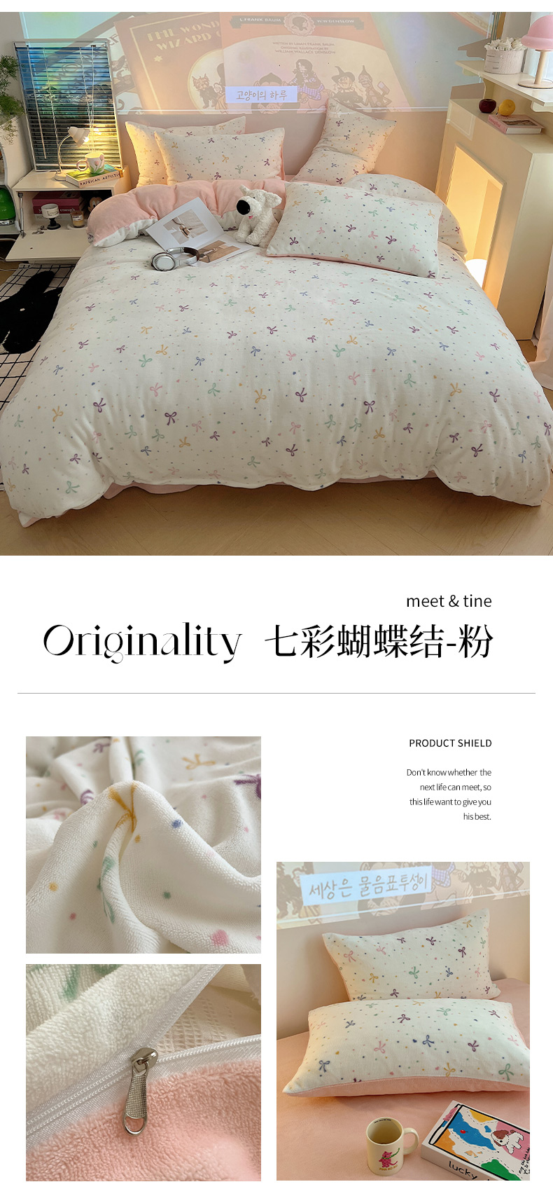 瑞莱 2025新款A类200克高克重秋冬印花牛奶绒四件套-卡通系列 花环兔