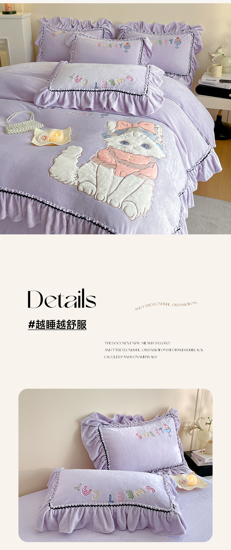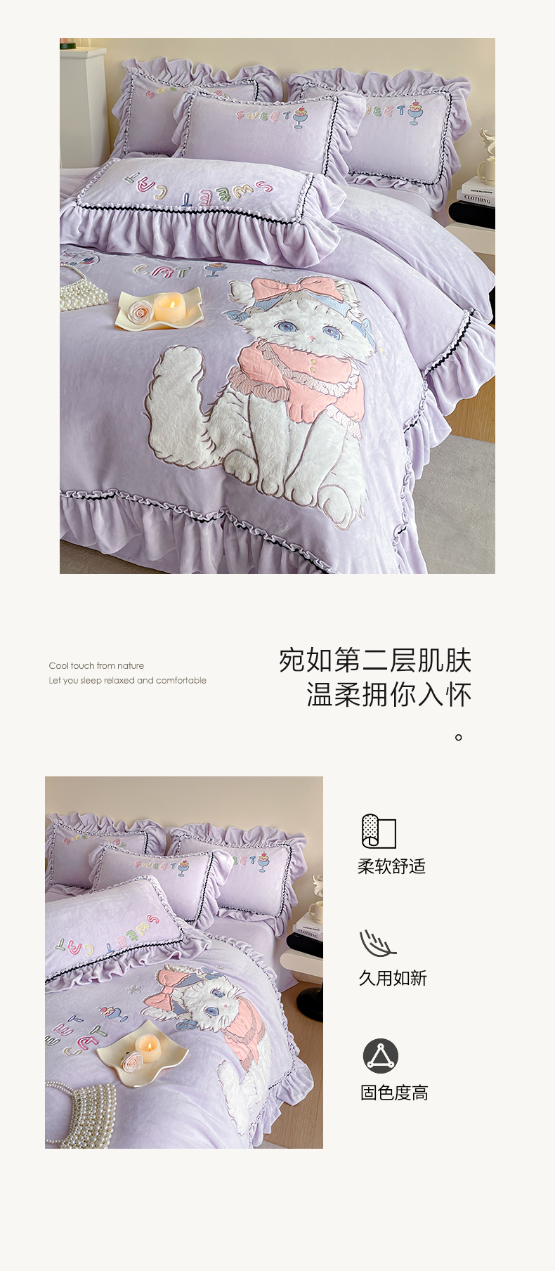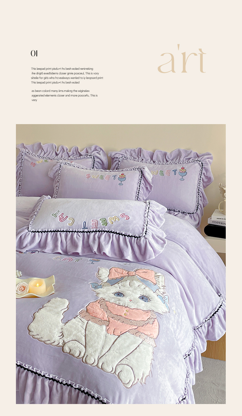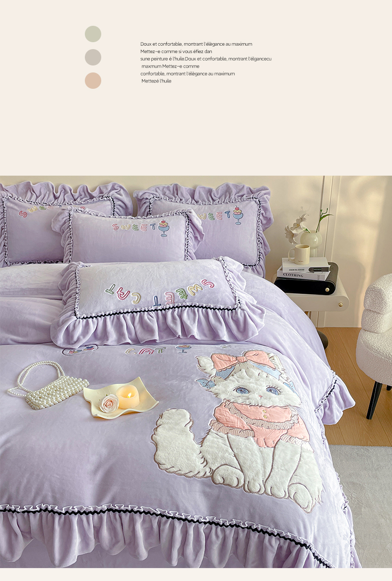 商品名称:民新家纺 2025新款牛奶绒毛巾绣贴布绣花四件套 蜜语-浅紫