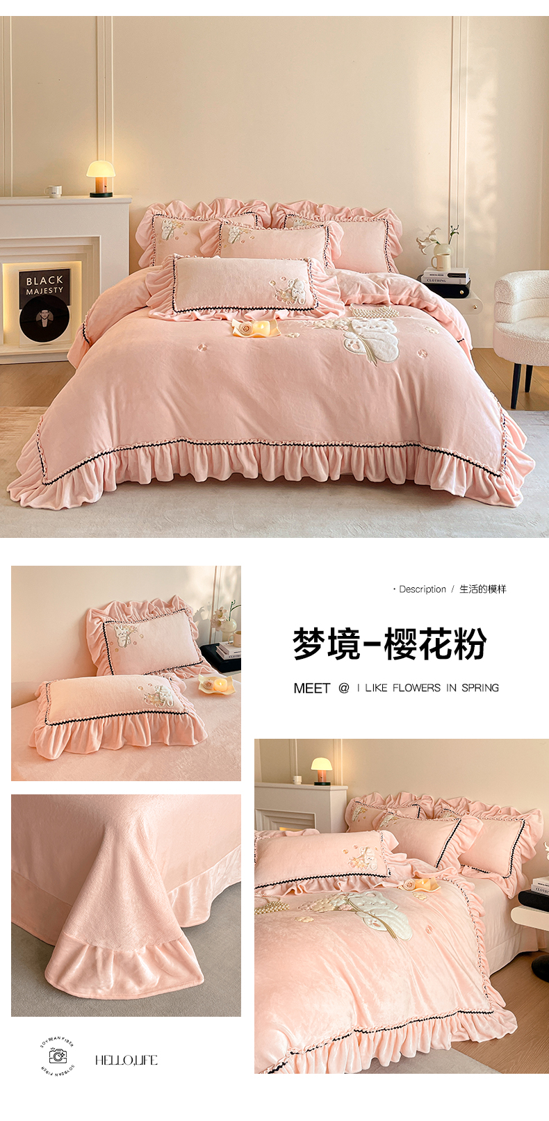 (总)民新家纺 2025新款牛奶绒花边床裙四件套,浪漫时光-浅粉,浪漫时光-大红,浪漫时光-灰,浪漫时光-浅蓝,浪漫时光-浅绿,浪漫时光-浅米黄,浪漫时光-浅紫