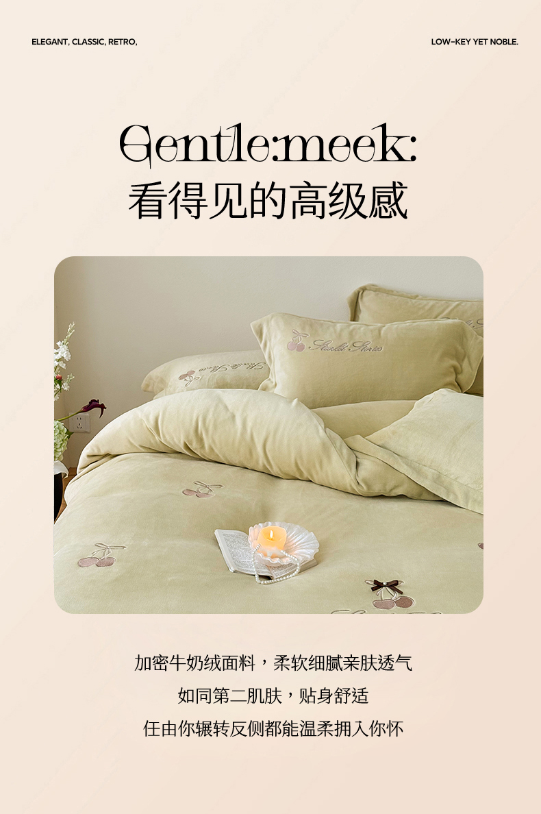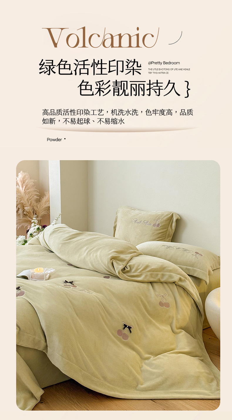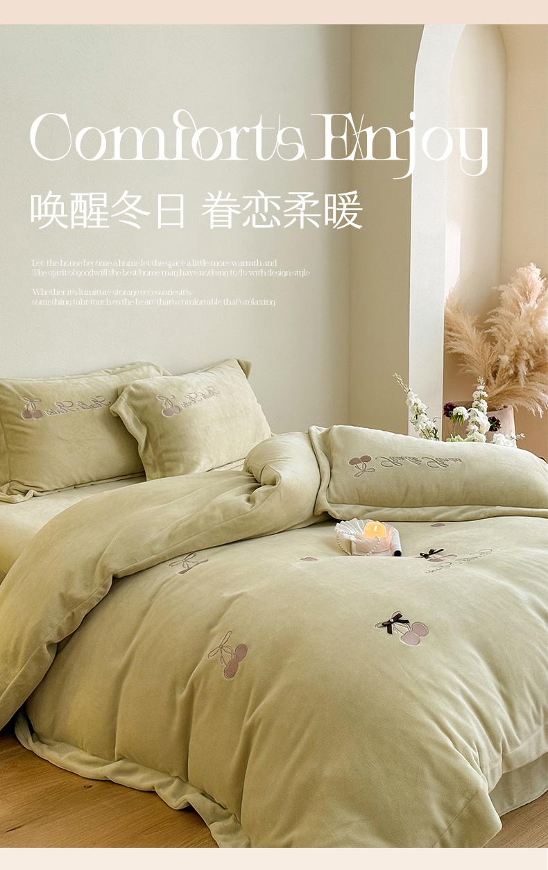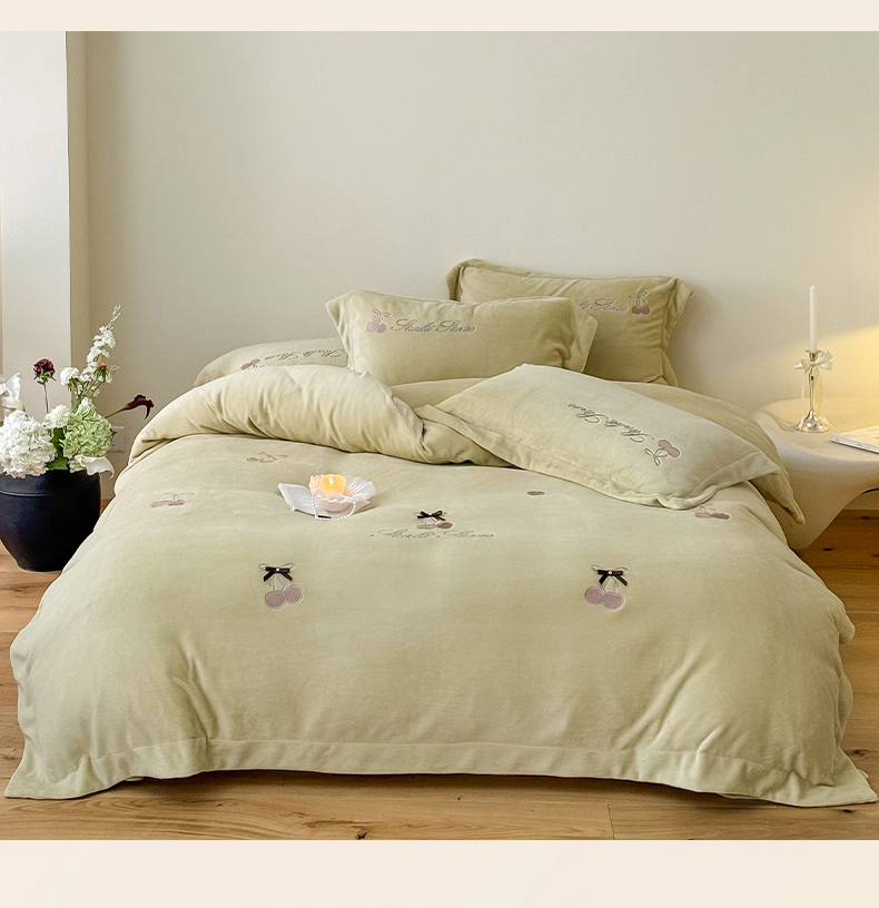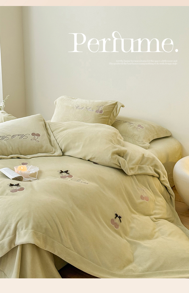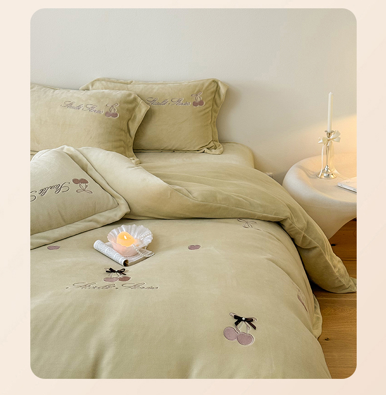 泽西家纺+V17798841158发大图 2025新品秋冬加厚保暖220克9斤刺绣牛奶绒四件套-樱桃泡泡糖 组合