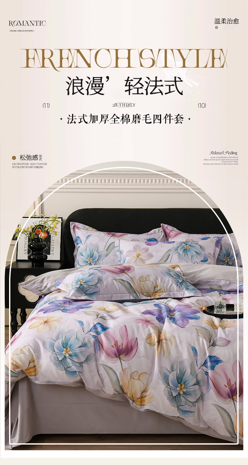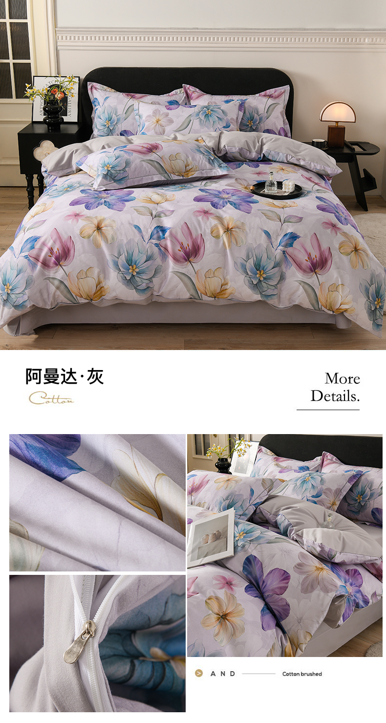 当前位置: 91家纺网 > 商品网购 > 床品套件 > 四件套 > 全棉普通四件套 > 金昱纺 2025新款法式加厚全棉纯棉磨毛四件套阿曼达-灰