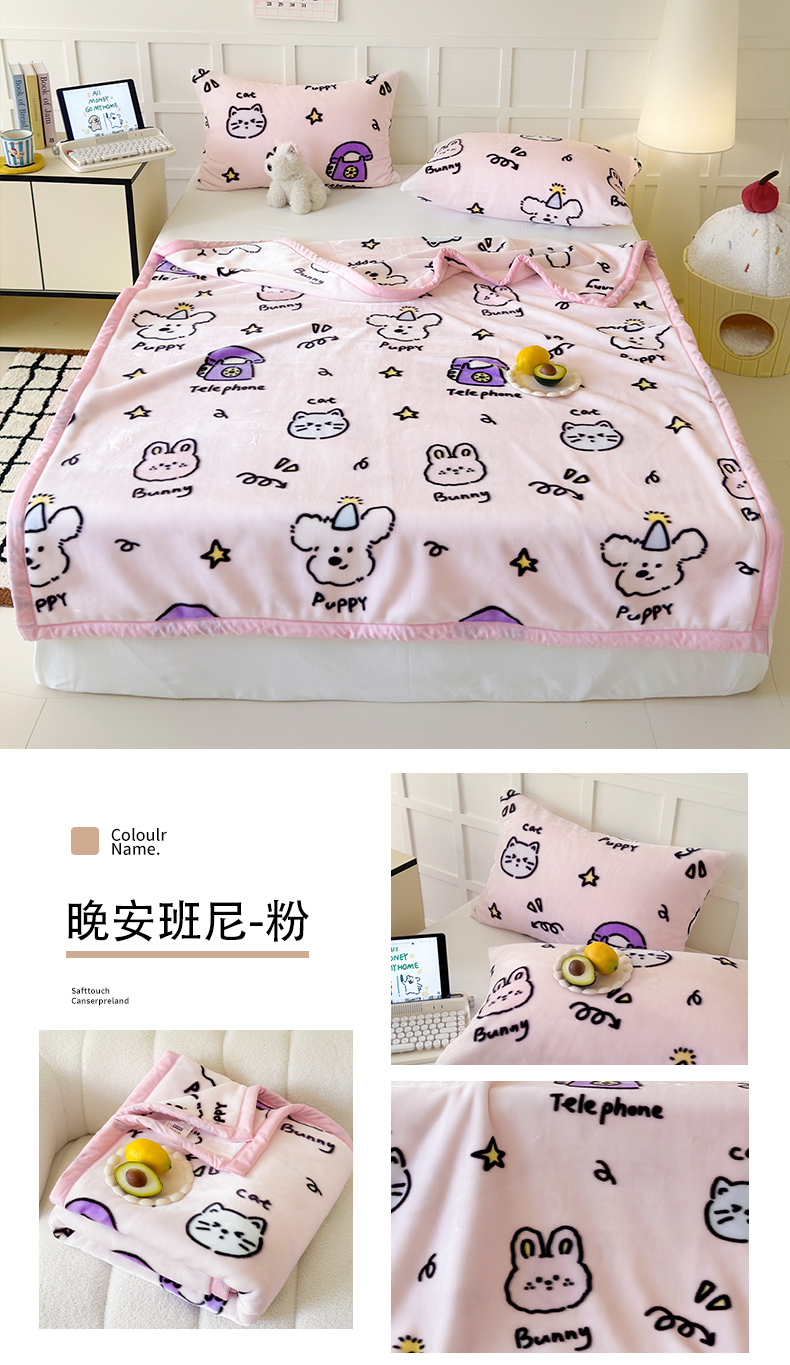(总)舒隅家纺 2025新款大版印花云毯毛毯毯子,波点家族,萌趣派对,小熊日记,狗狗乐园,小小太空人,呆呆卡皮,奶芙小兔,星月小熊