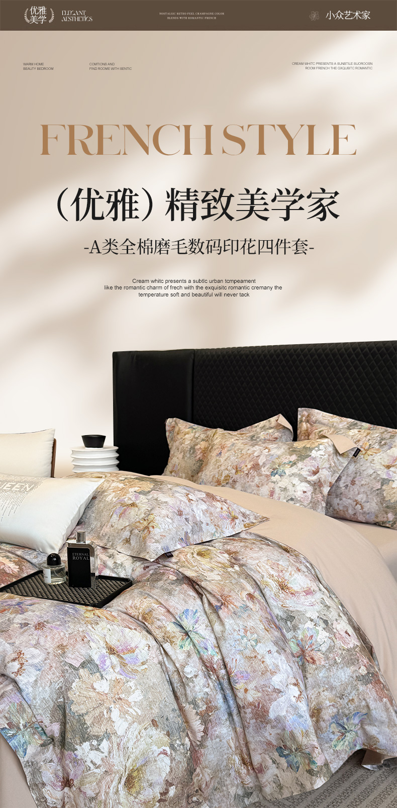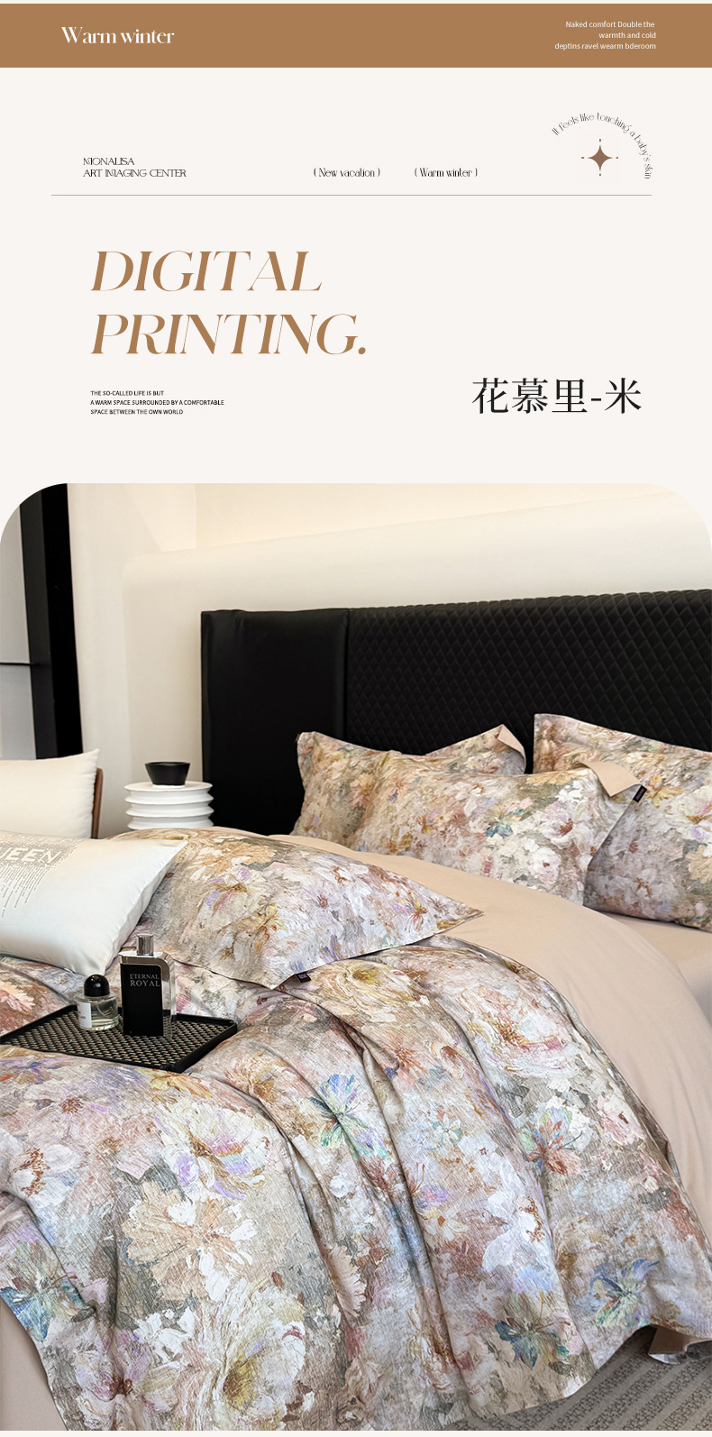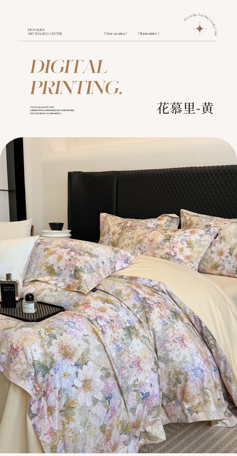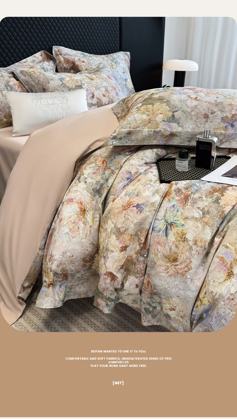 当前位置: 91家纺网 > 商品网购 > 床品套件 > 四件套 > 长绒棉四件套 > 2025秋冬新款轻奢新疆长绒棉纯棉磨毛加厚数码印花四件套花慕里 花慕里-米