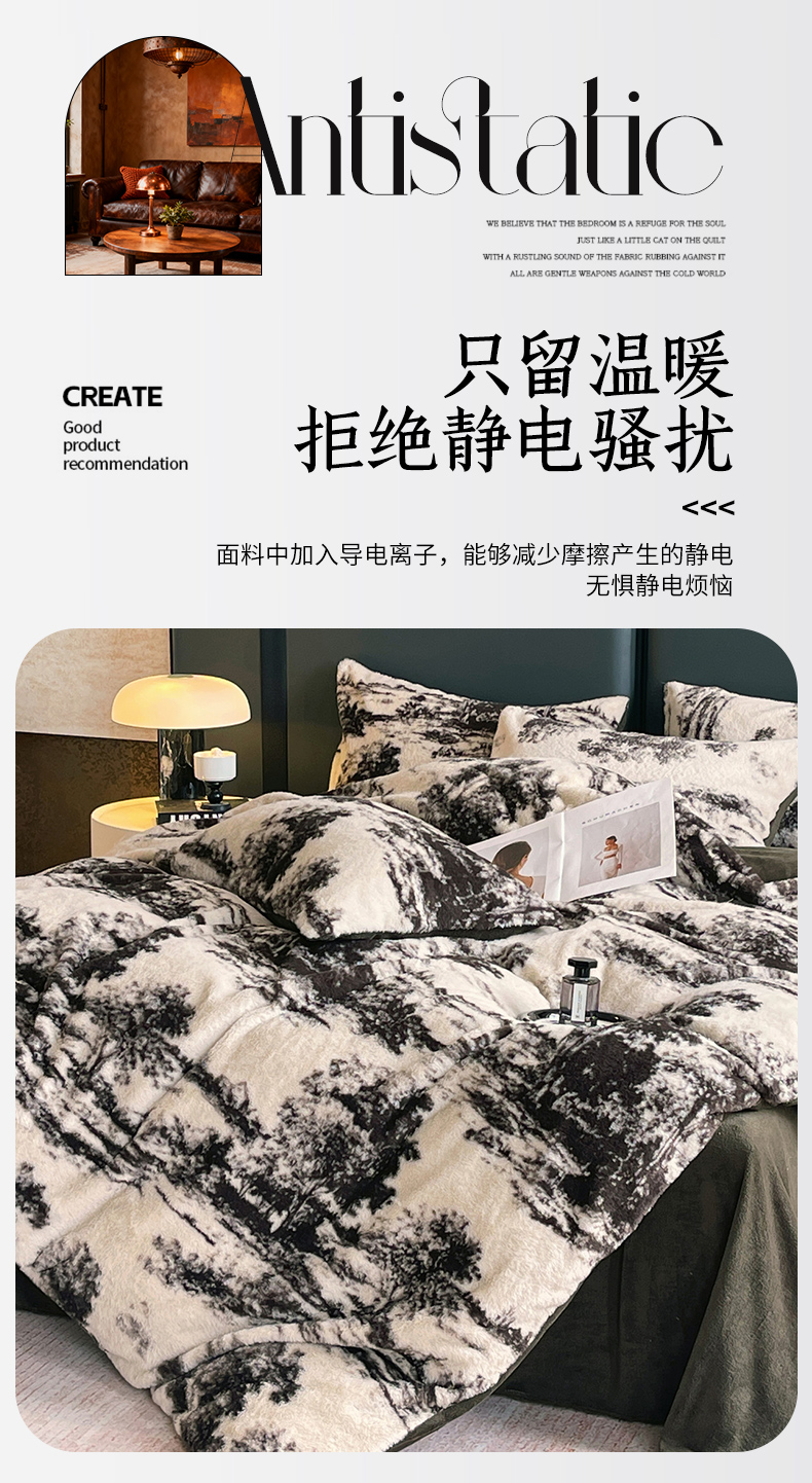 (总)佰亿莱 2026新款印花兔毛绒双面锁温暖绒四件套,凤蝶-咖,栖音,墨栖-咖,秋离,墨栖-白,山月记,瑾色,条纹咖,晚棠,云杉-灰,云杉-咖
