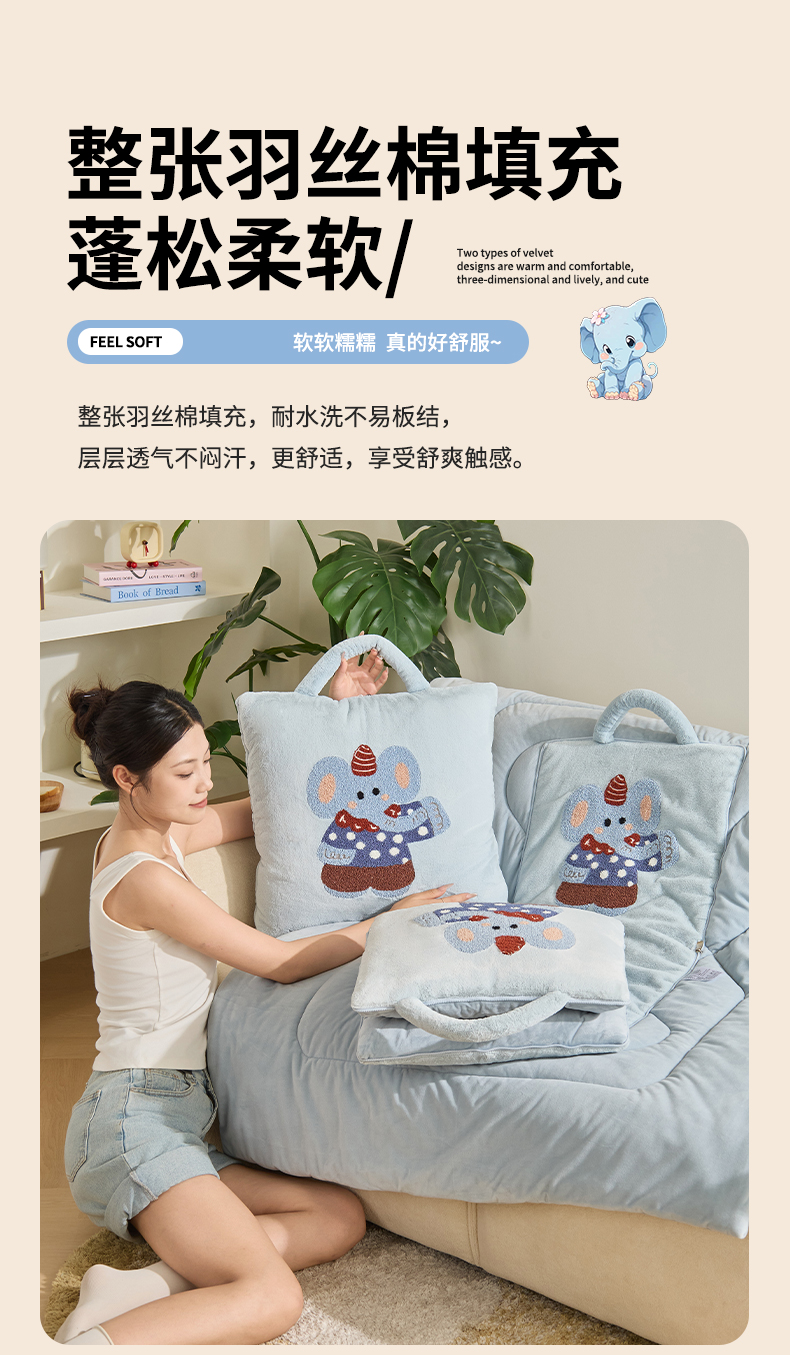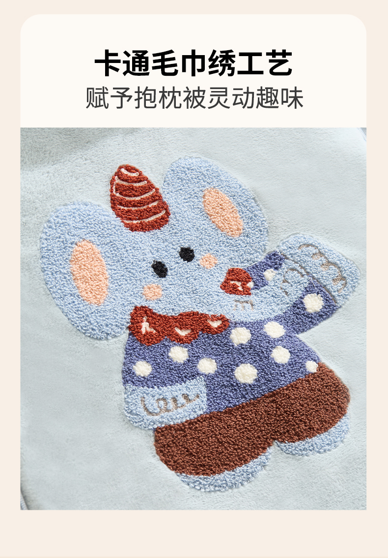 (总)多米家居 2025新款可爱卡通双荣毛巾绣抱枕被,绅士小象 40*40展开105*145,绅士小象 50*50展开145*195,抱抱狮 40*40展开105*145,抱抱狮 50*50展开145*195,蘑菇兔 40*40展开105*145,蘑菇兔 50*50展开145*195,躺平熊猫 40*40展开105*145,躺平熊猫 50*50展开145*195