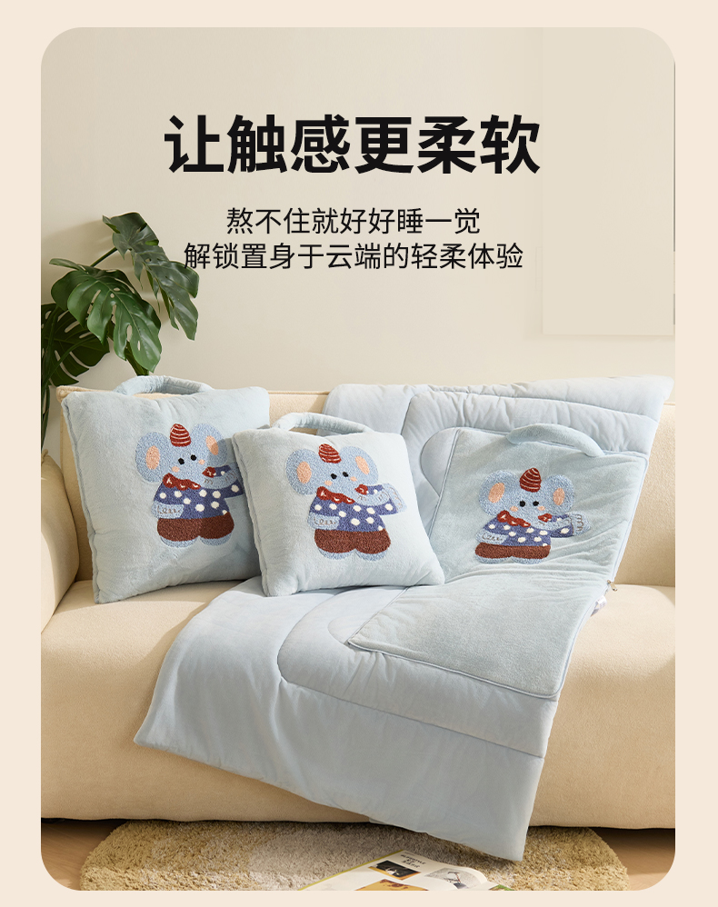 (总)多米家居 2025新款牛奶绒请开心抱枕被-Jellylove系列,组合图仅供参考不可下单,Jellylove-豹豹粉,Jellylove-豹豹蓝