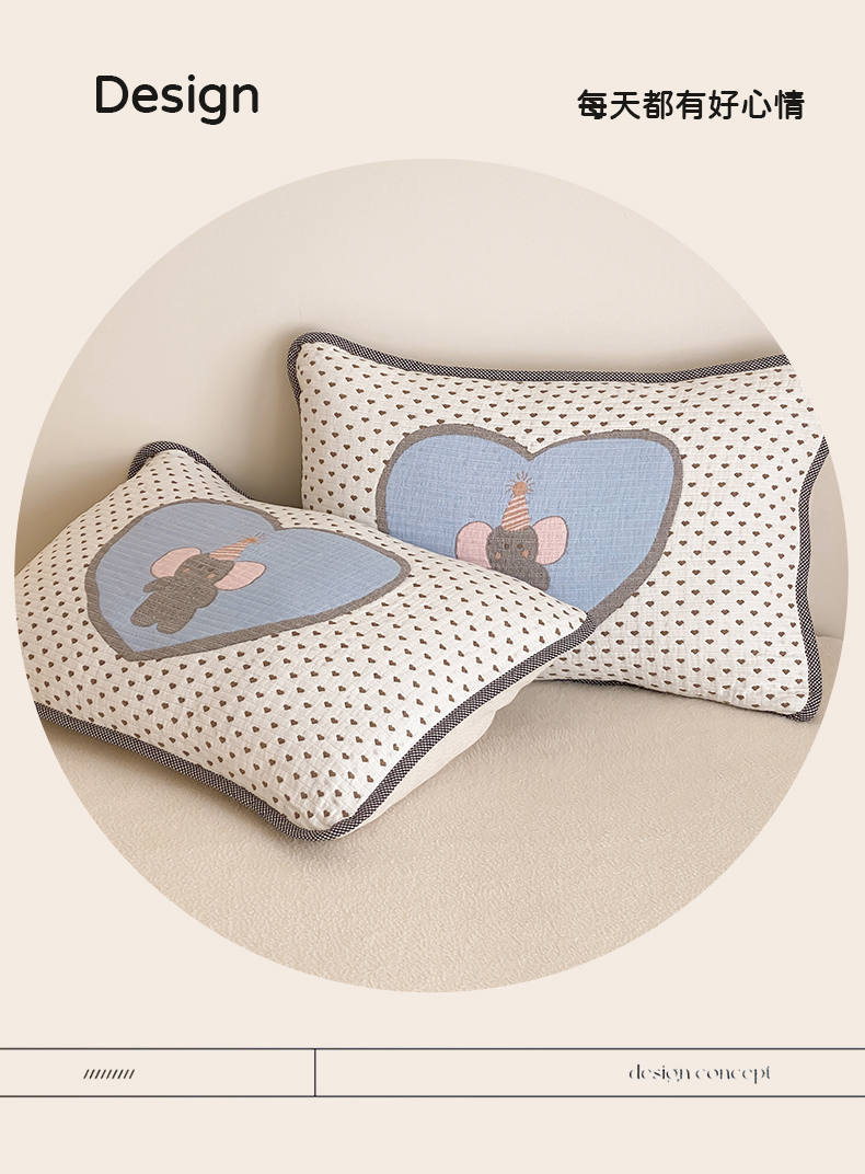 商品名称:麻依 2025新款软萌四层全棉纱布枕套 心心小象