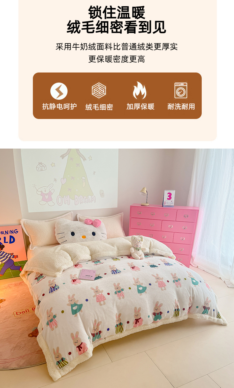 商品名称:艾特你 2025新款多功能羊羔绒牛奶绒单毛毯单被套 羊-花间兔