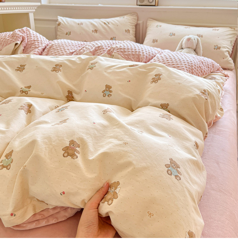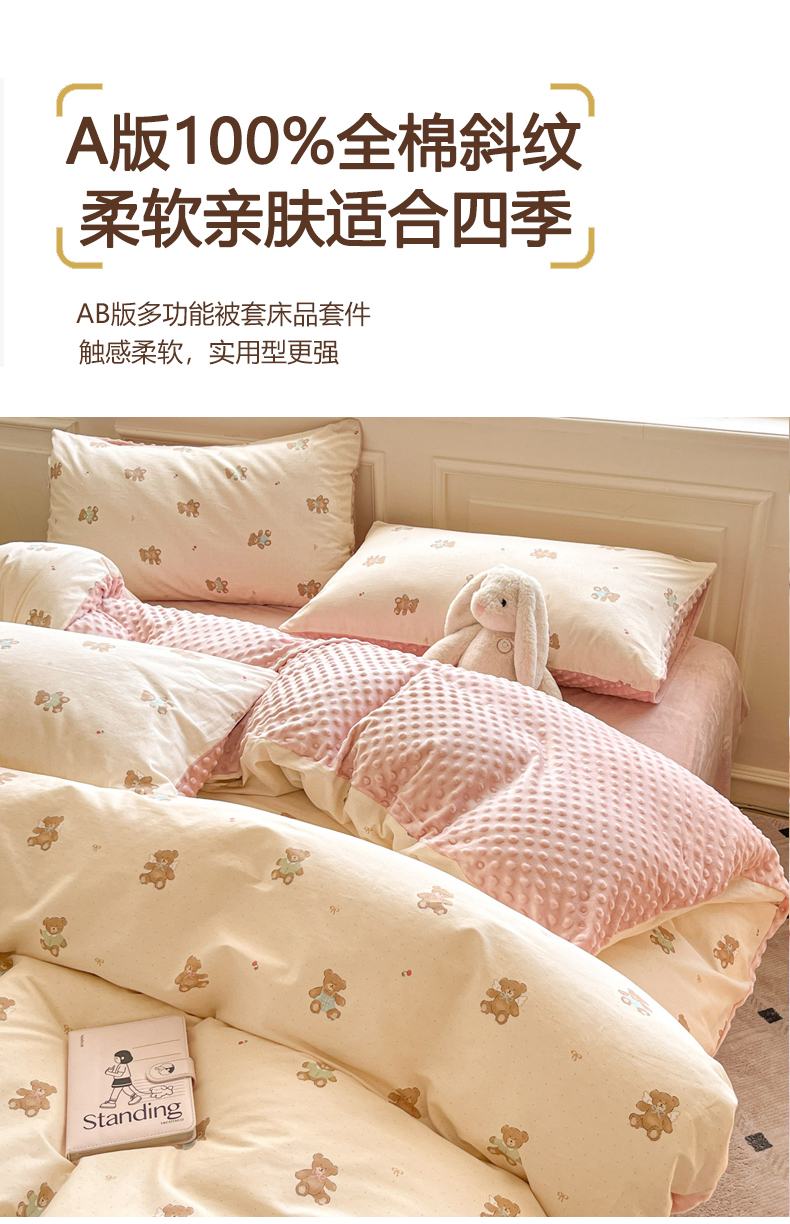 当前位置: 91家纺网 > 商品网购 > 床品套件 > 四件套 > 全棉普通四件套 > 麦伦家居 2025秋冬新品多功能床品全棉+豆豆绒四件套卡通小清新系列 杰克熊