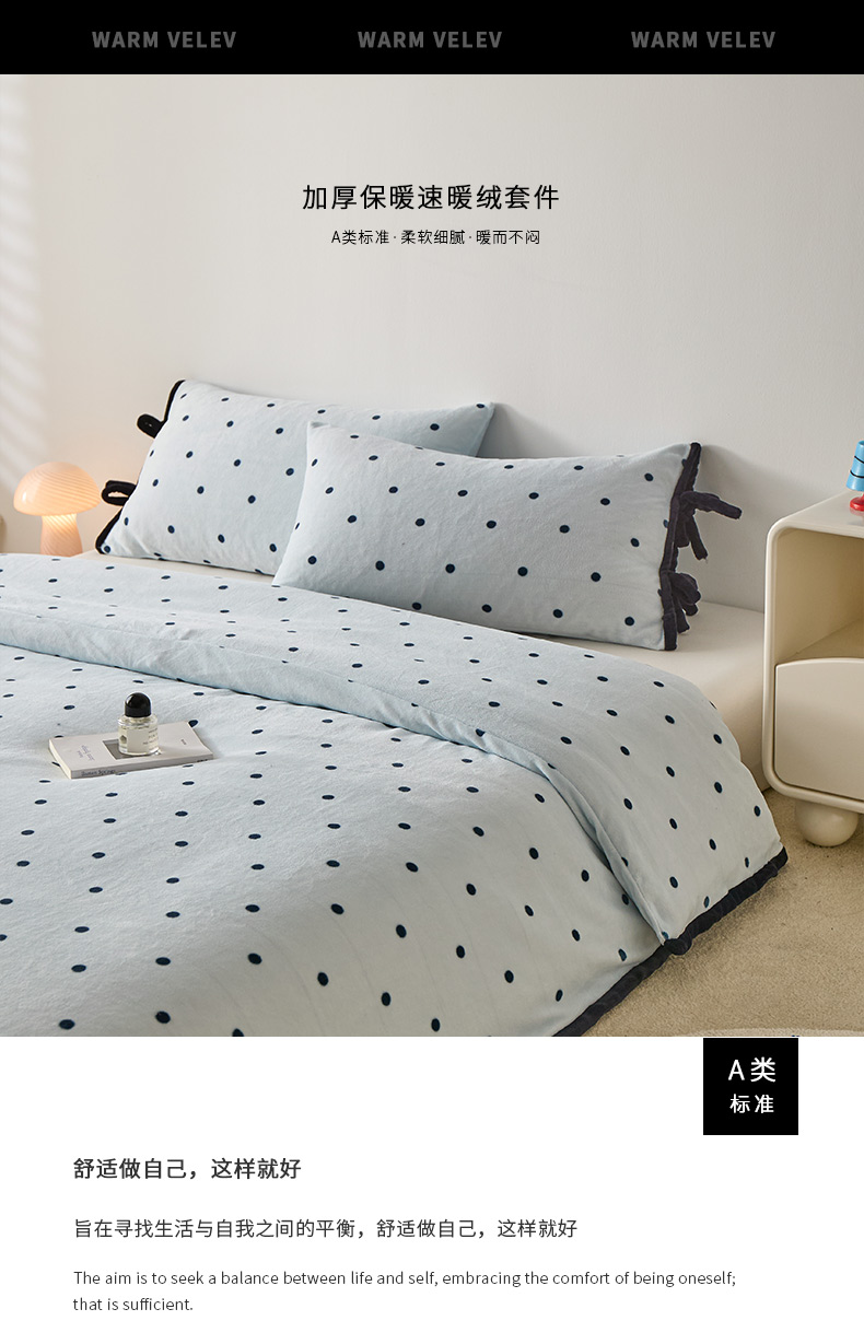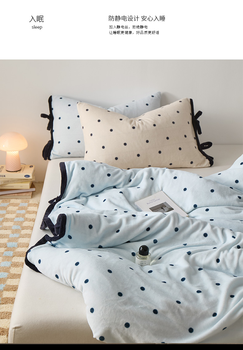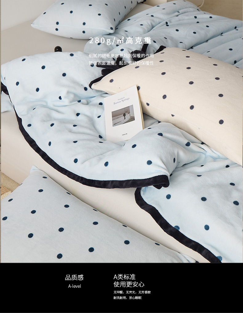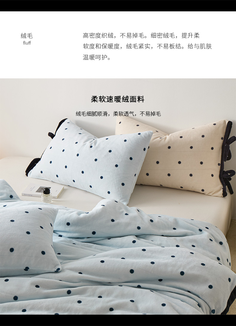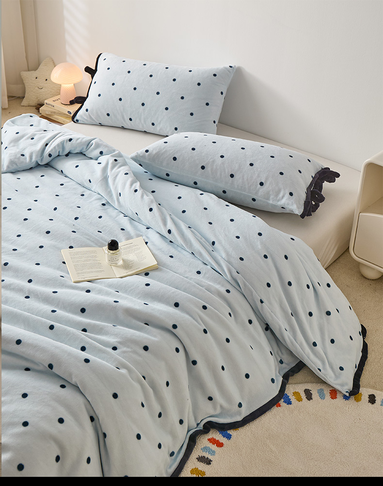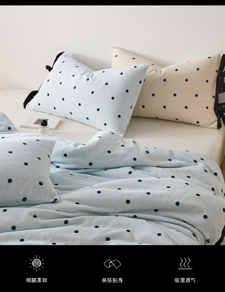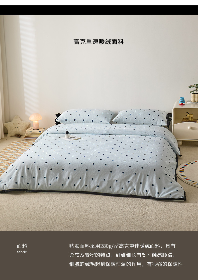商品名称:禧禾 2025新款250G消光速暖绒印花断角拼色四件套-波尔卡(控价:到手价不能低于258) 波尔卡-云水蓝