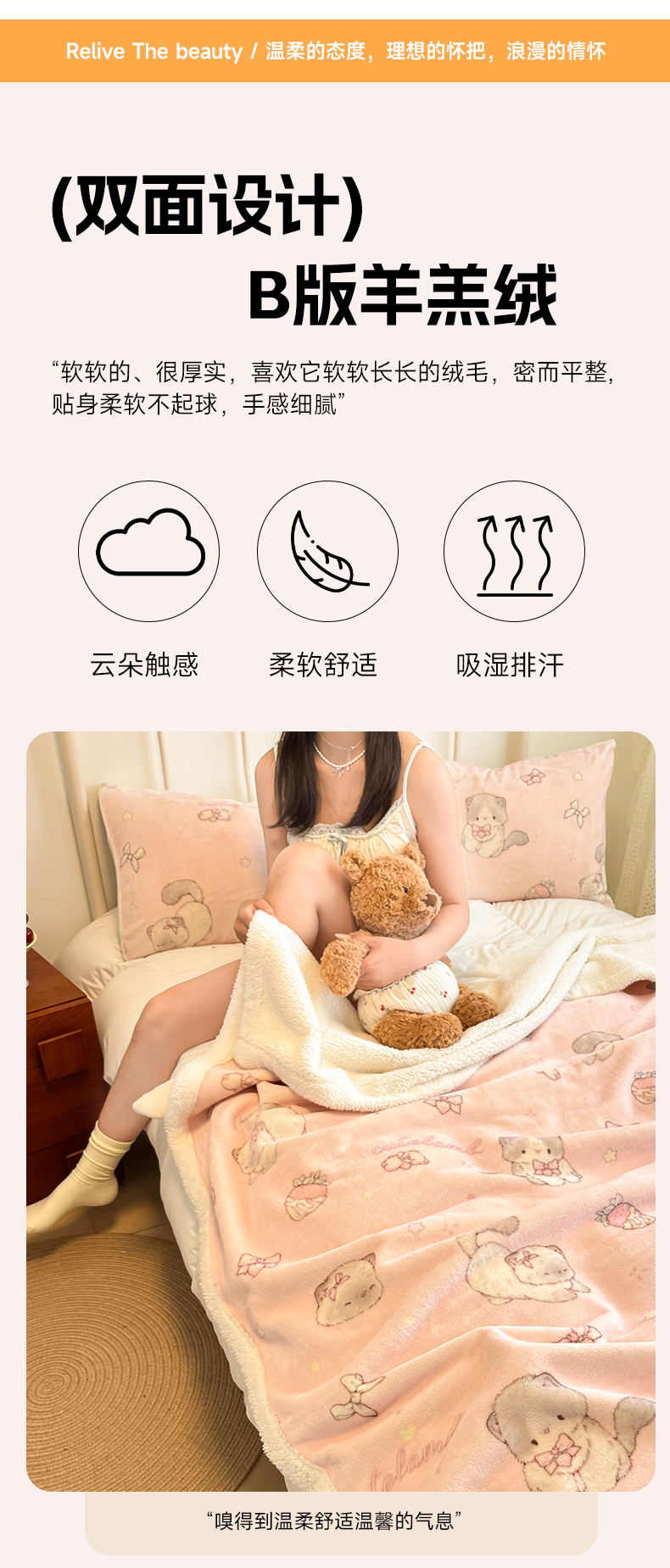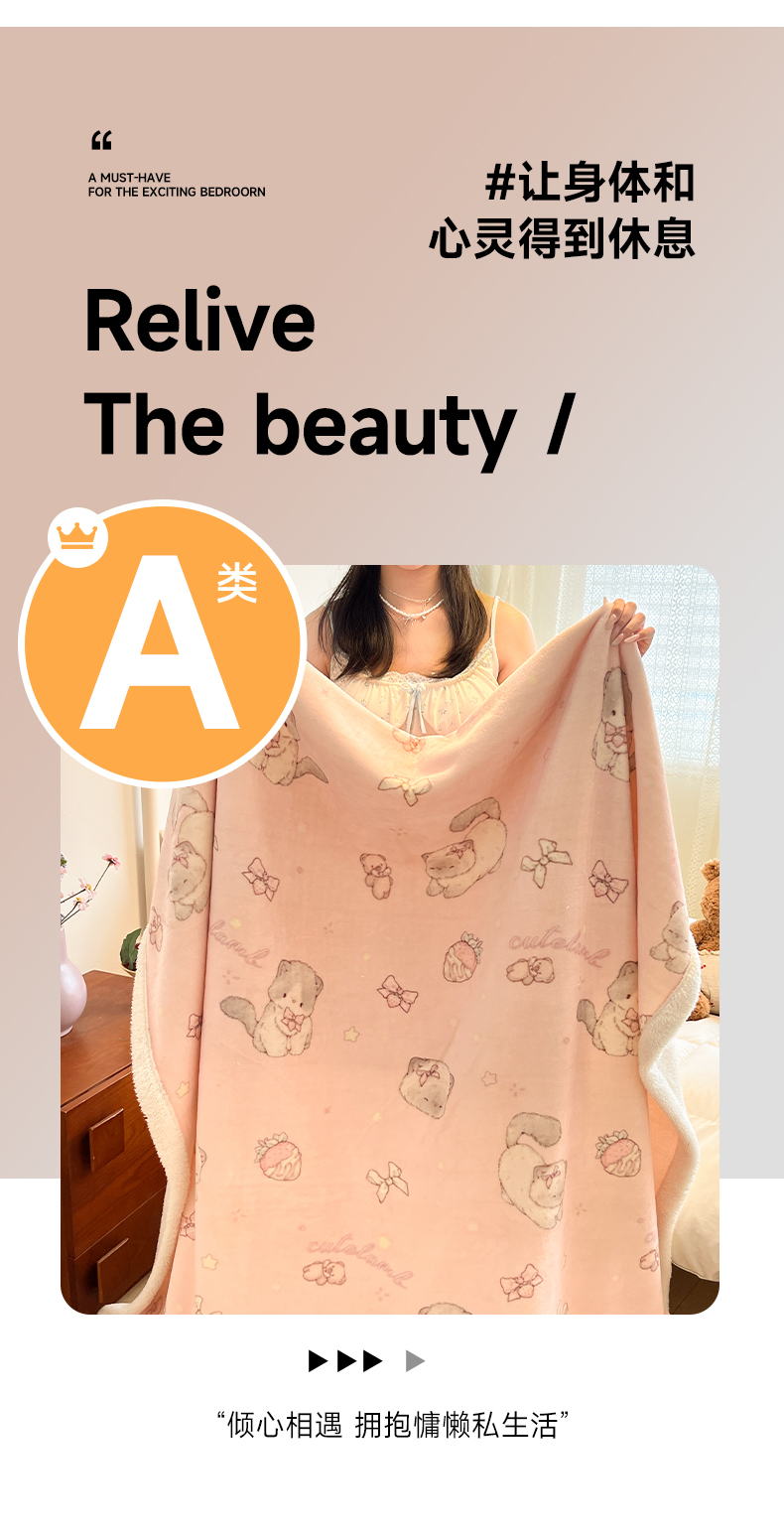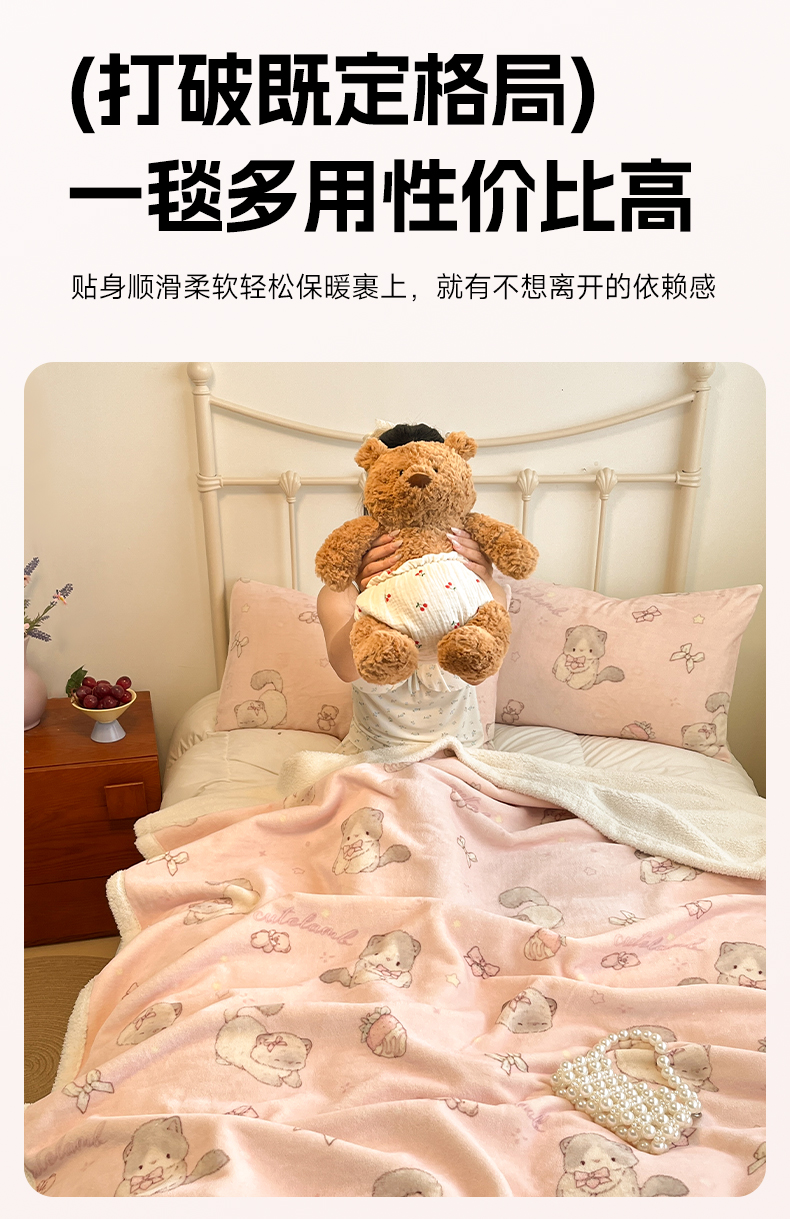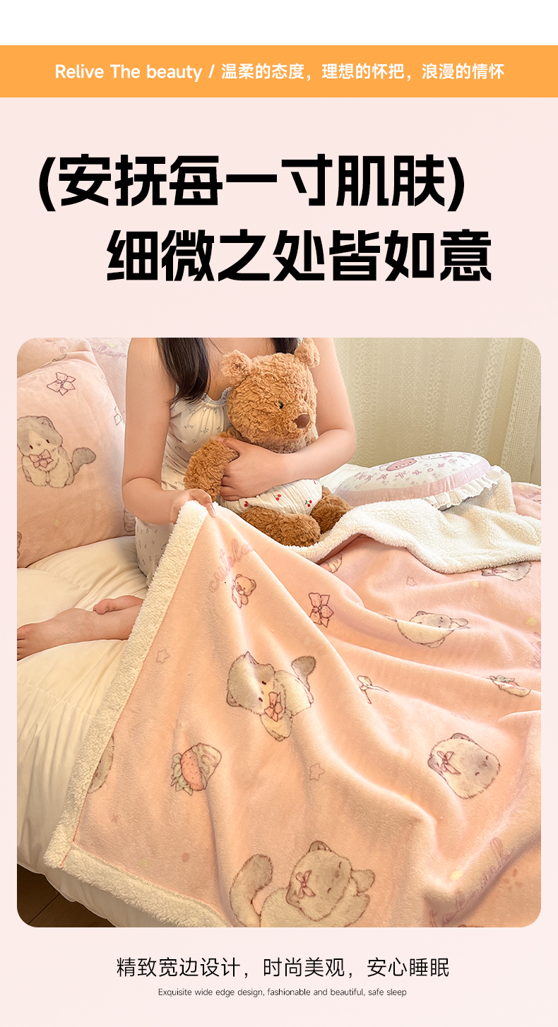 商品名称:红嘴企鹅 2025新款A类ins风卡通可爱加厚牛奶绒羊羔绒毛毯毯子办公室沙发儿童空调盖毯午休毯 羞羞猫