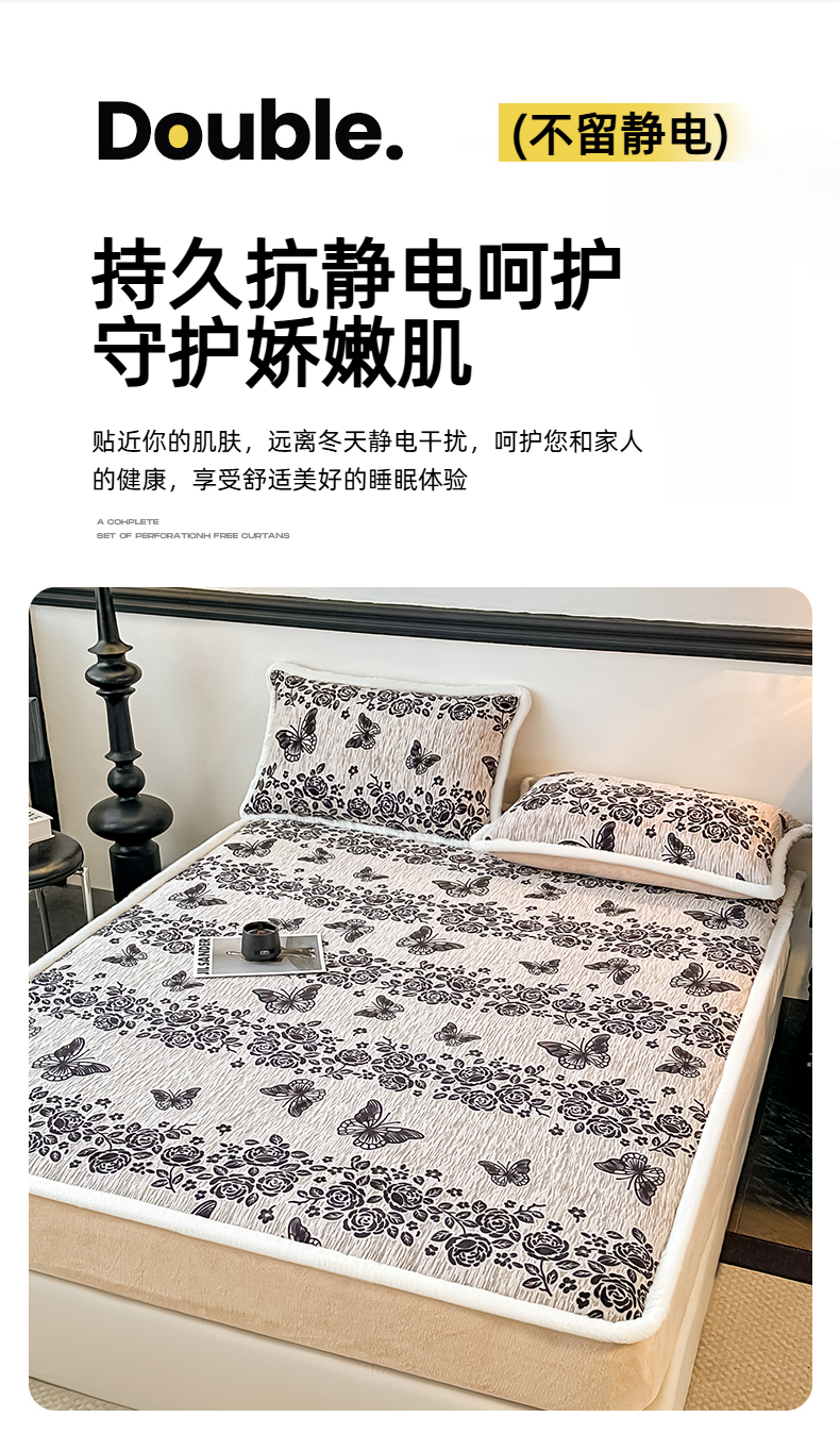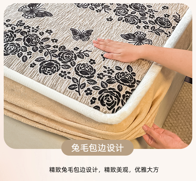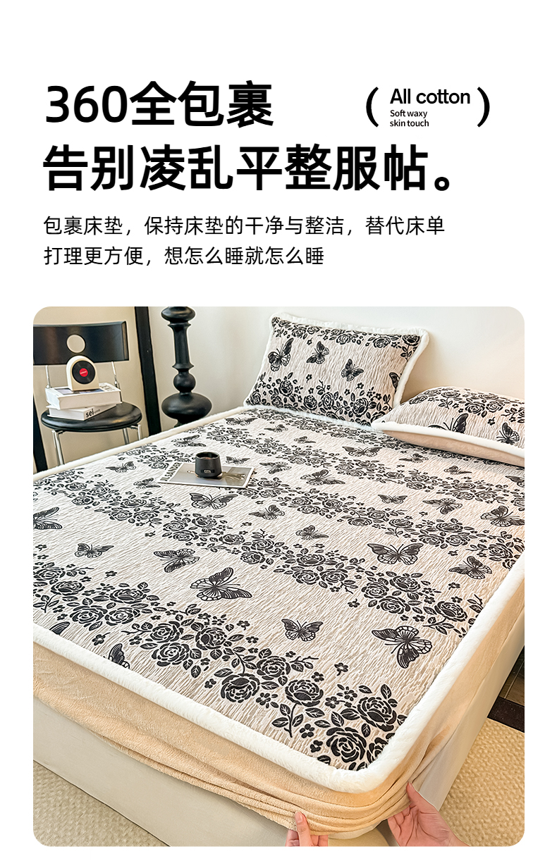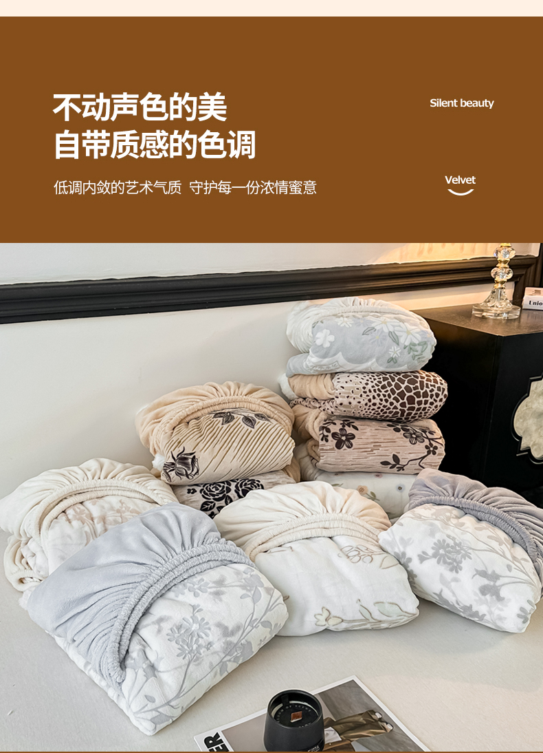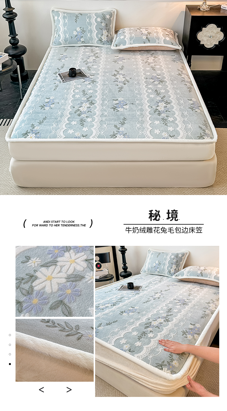 商品名称:(总)盛眠家纺 2025新款牛奶绒雕花兔毛包边床笠三件套