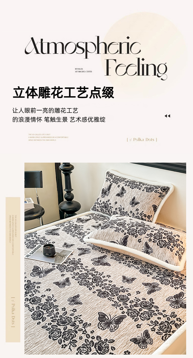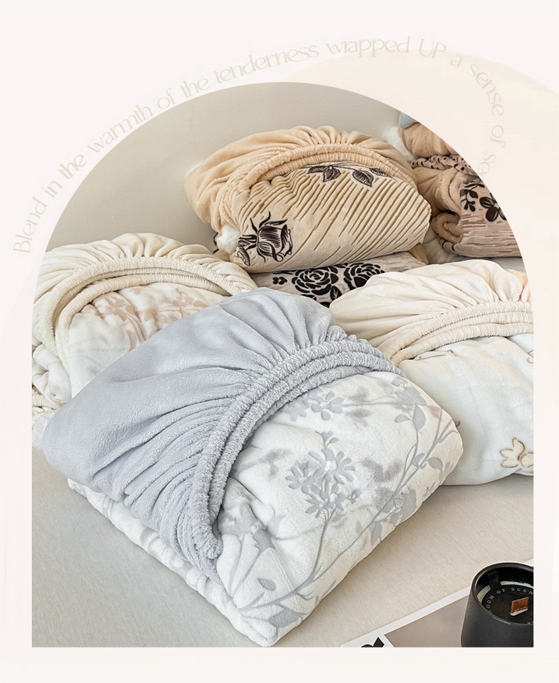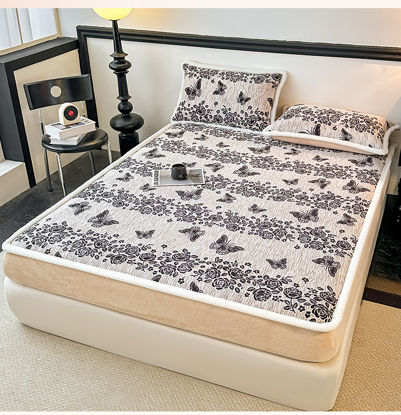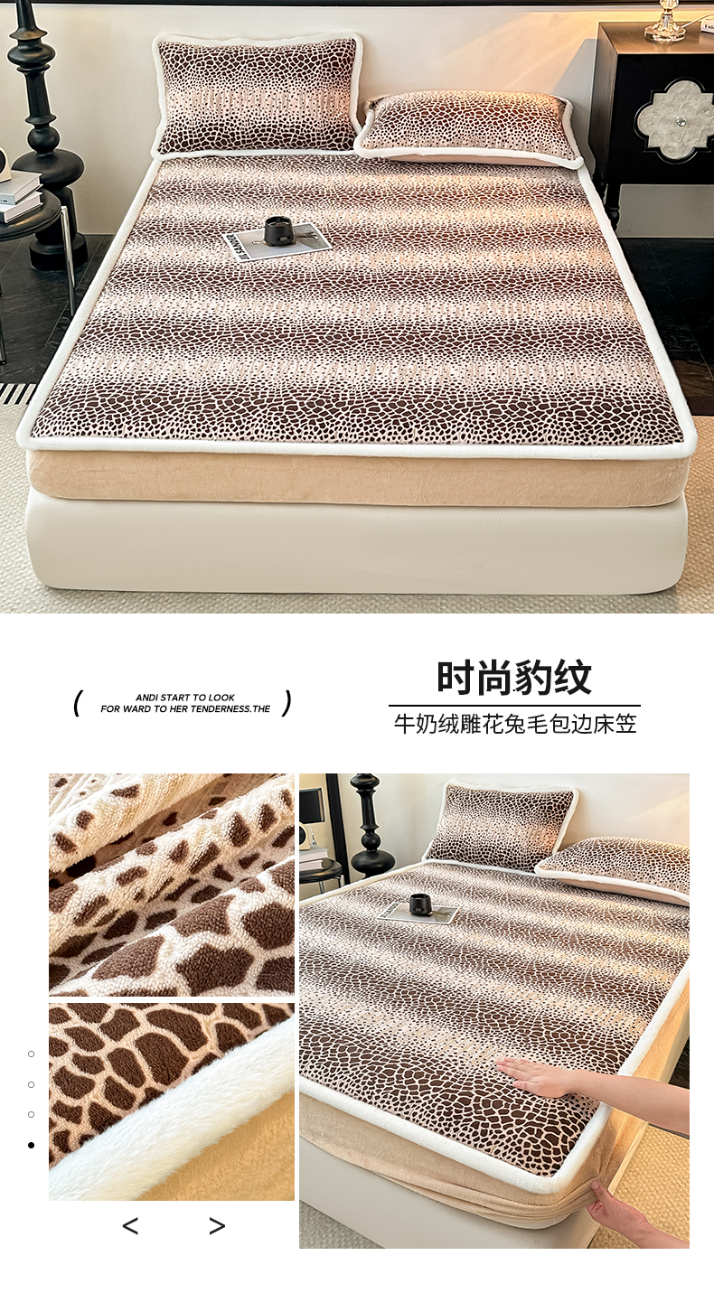 (总)盛眠家纺 2025新款牛奶绒雕花兔毛包边床笠三件套