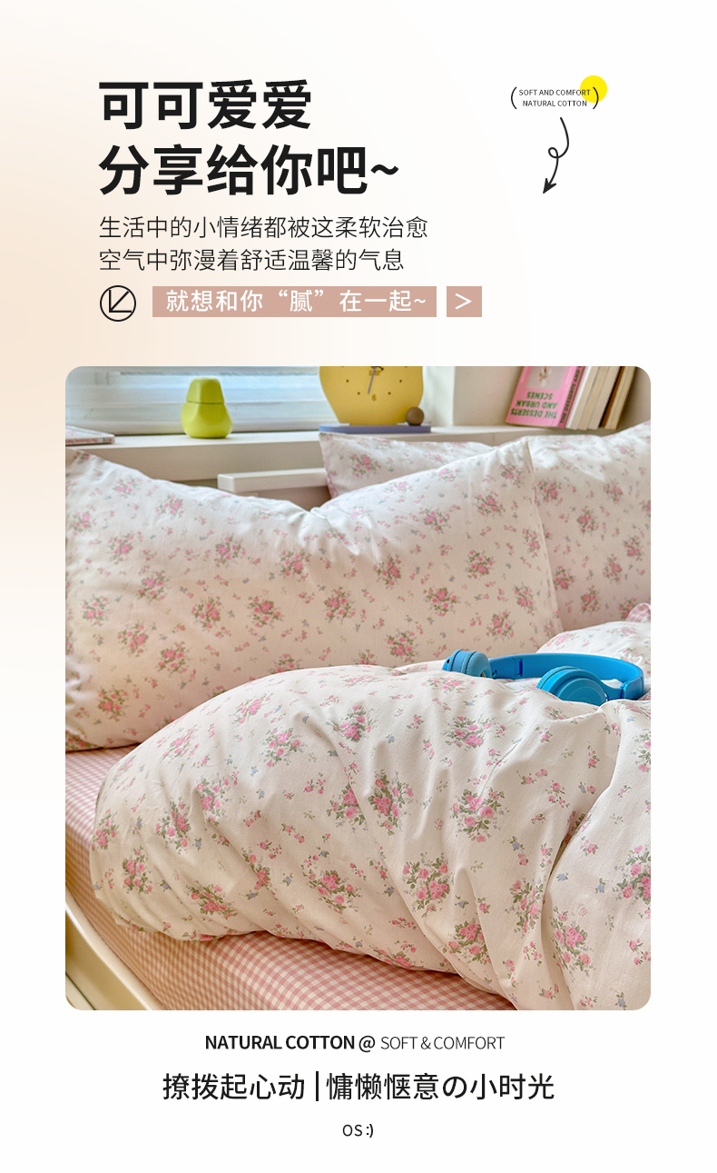 当前位置: 91家纺网 > 商品网购 > 床品套件 > 四件套 > 全棉普通四件套 > 小叮当家纺仓储工厂店 2025新款13372碎花系列全棉纯棉印花四件套 晚风