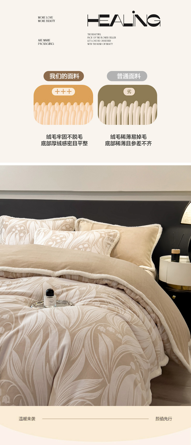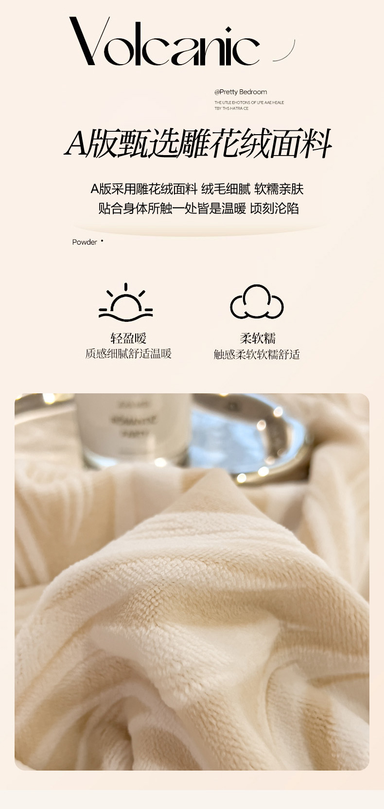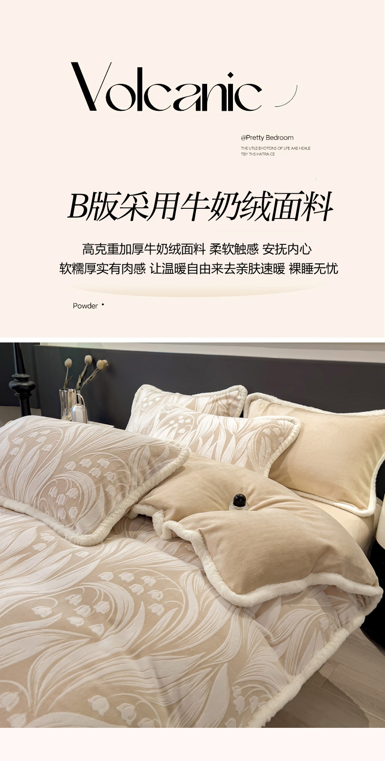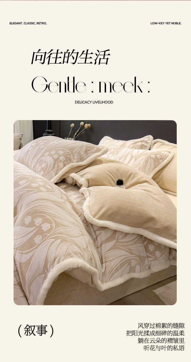 当前位置: 91家纺网 > 商品网购 > 床品套件 > 四件套 > 兔毛绒四件套 > 印季家纺 2025新款法式立体雕花绒兔毛包边四件套 铃兰梦境-米黄