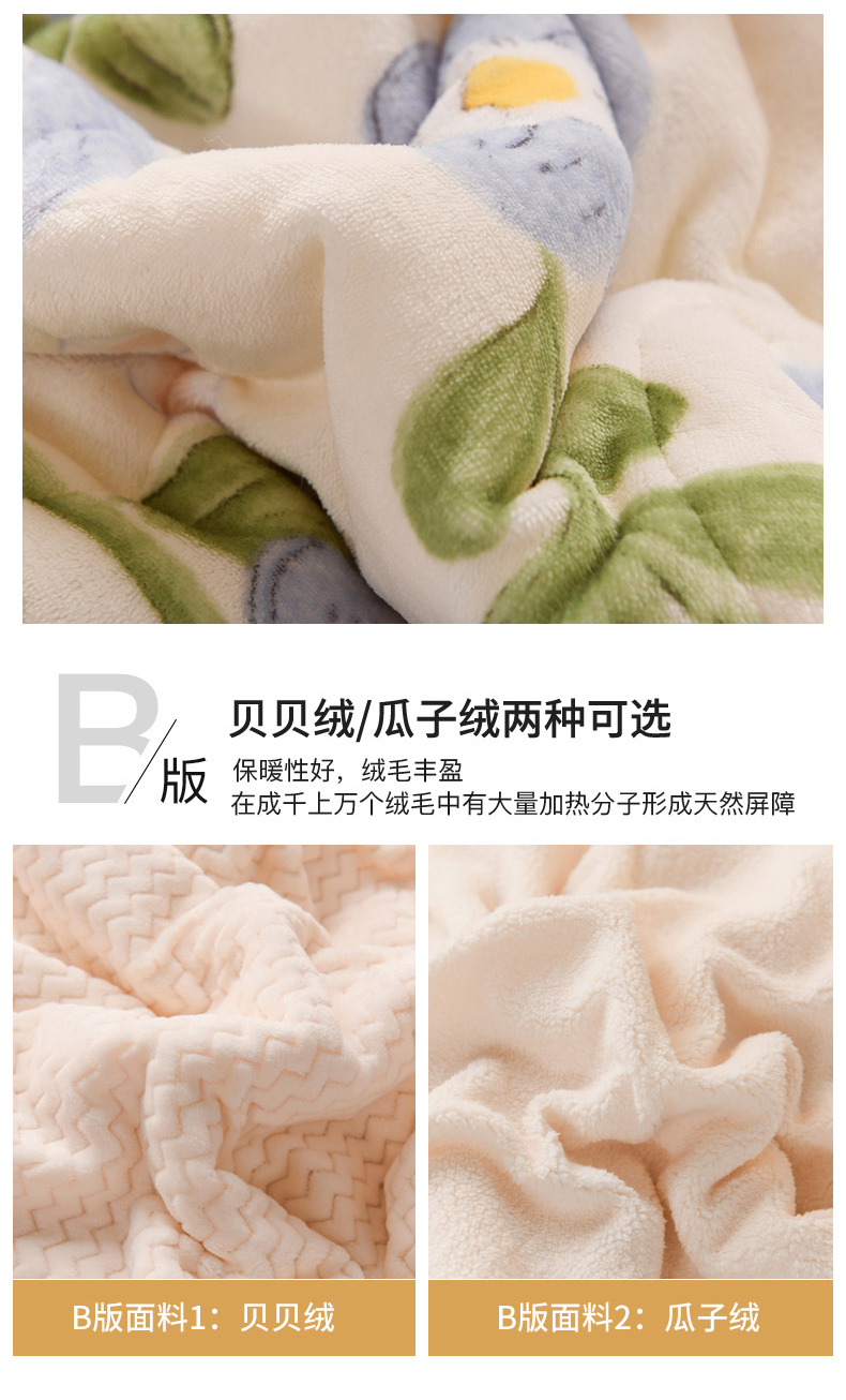 商品名称:印季家纺 2025新款三层夹棉印花牛奶绒毛毯毯子 蓝色心情