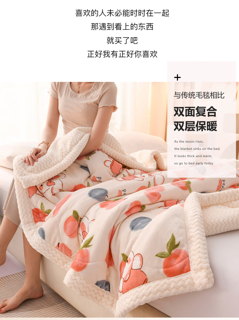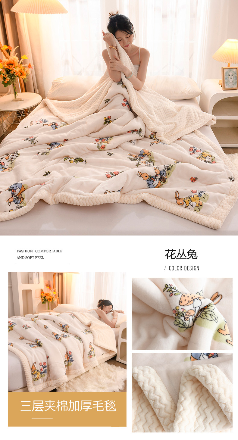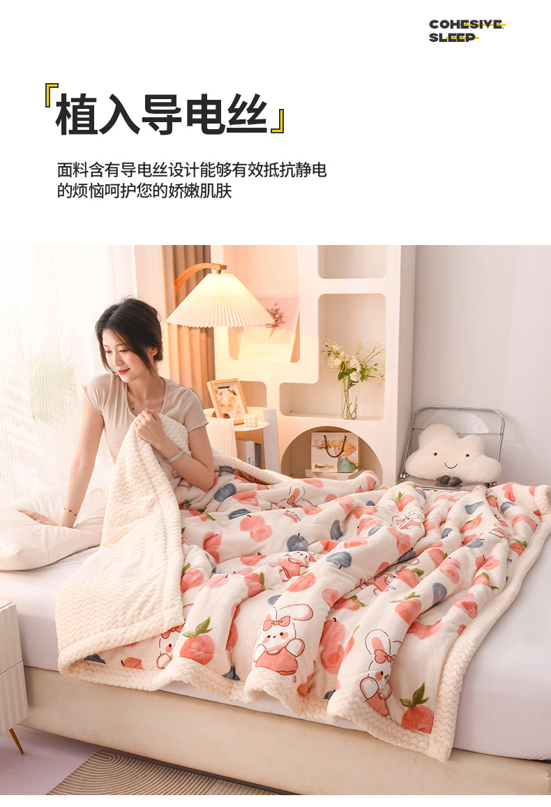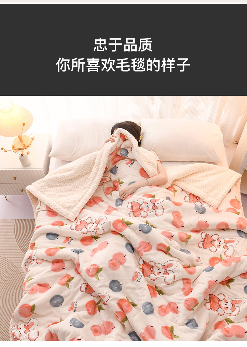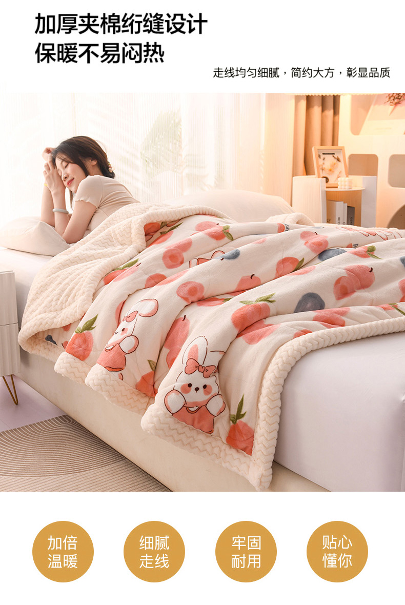印季家纺 2025新款三层夹棉印花牛奶绒毛毯毯子 桃桃兔