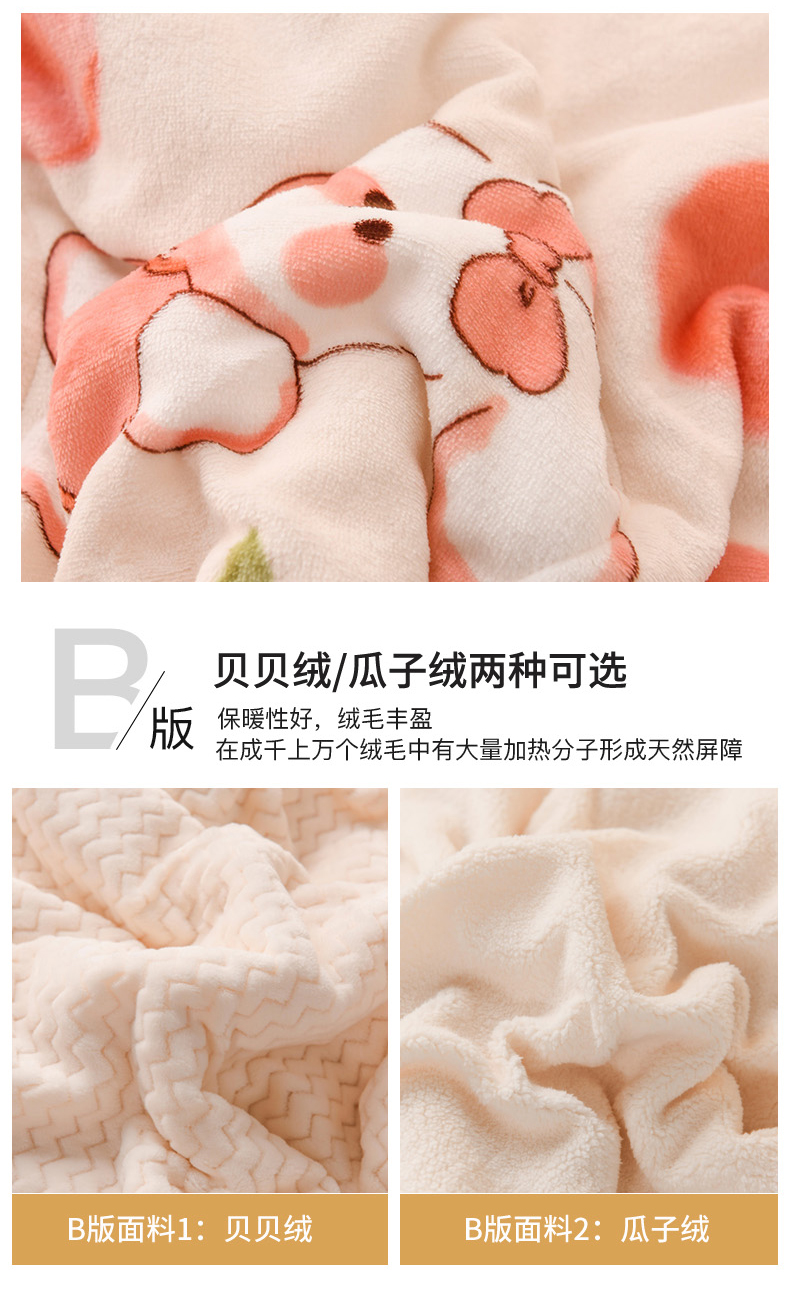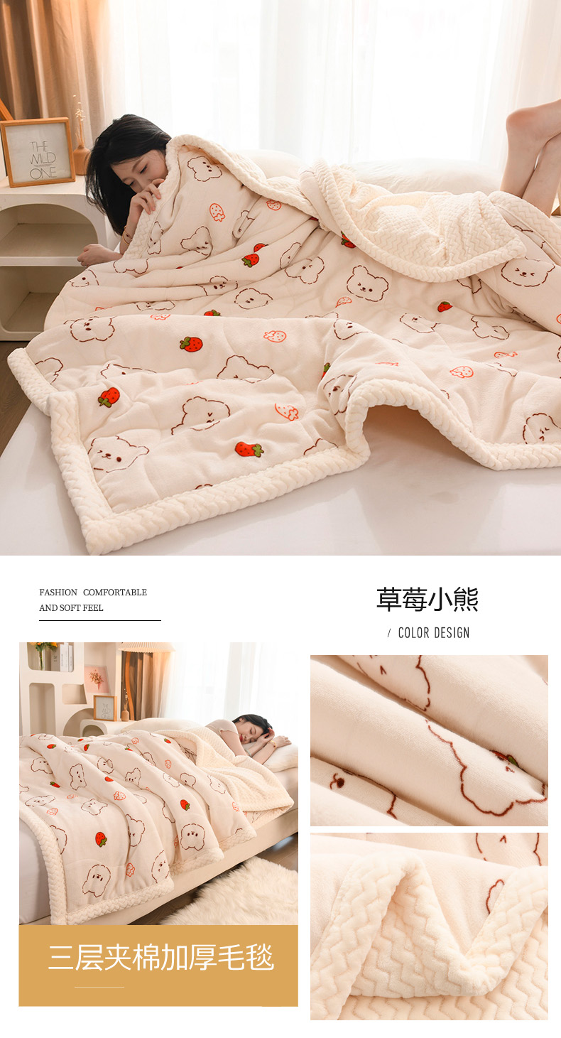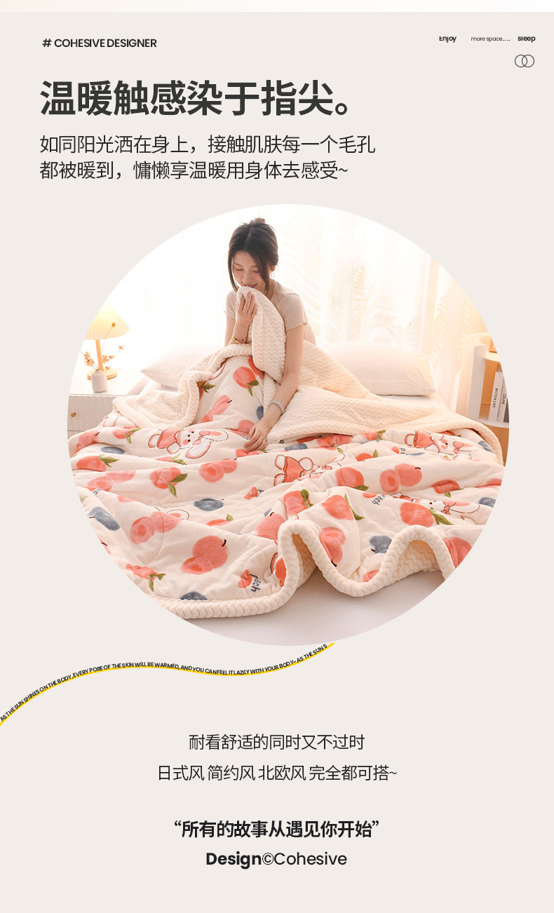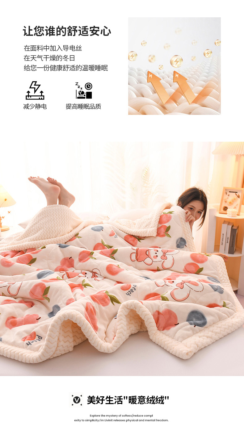印季家纺 2025新款三层夹棉印花牛奶绒毛毯毯子 桃桃兔