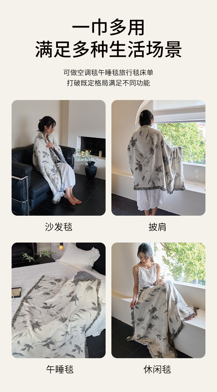 (总)沐瑟家纺 2025新款亲肤柔软全棉纱布中国风盖毯毯子,百花集,翠影鸟-蓝色,花想容,花鸟韵,蝶语-绿,蝶语-淡粉,花蝶-米,比翼鸟,墨葵,绮梦花