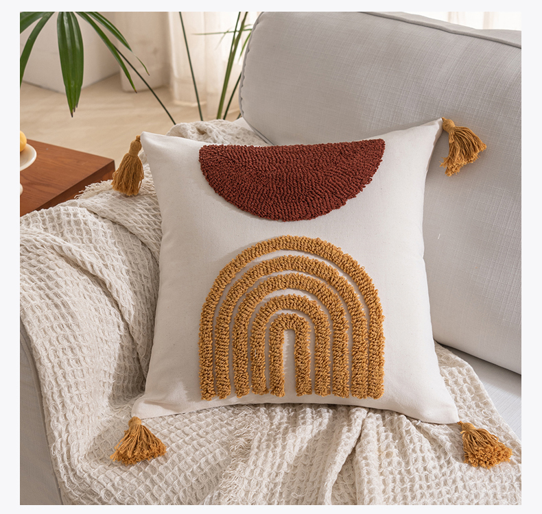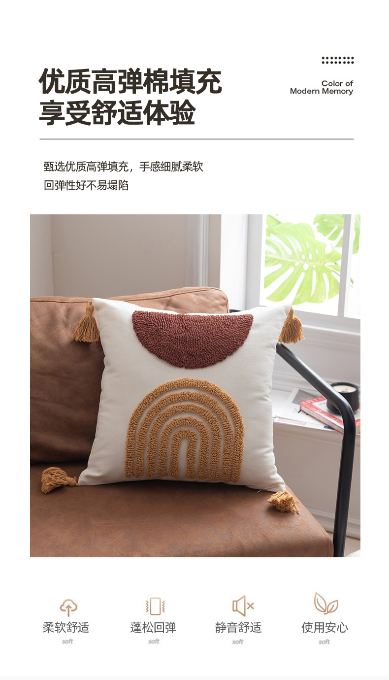 博笔熊家纺 2025新款北欧绣花流苏抱枕 橘