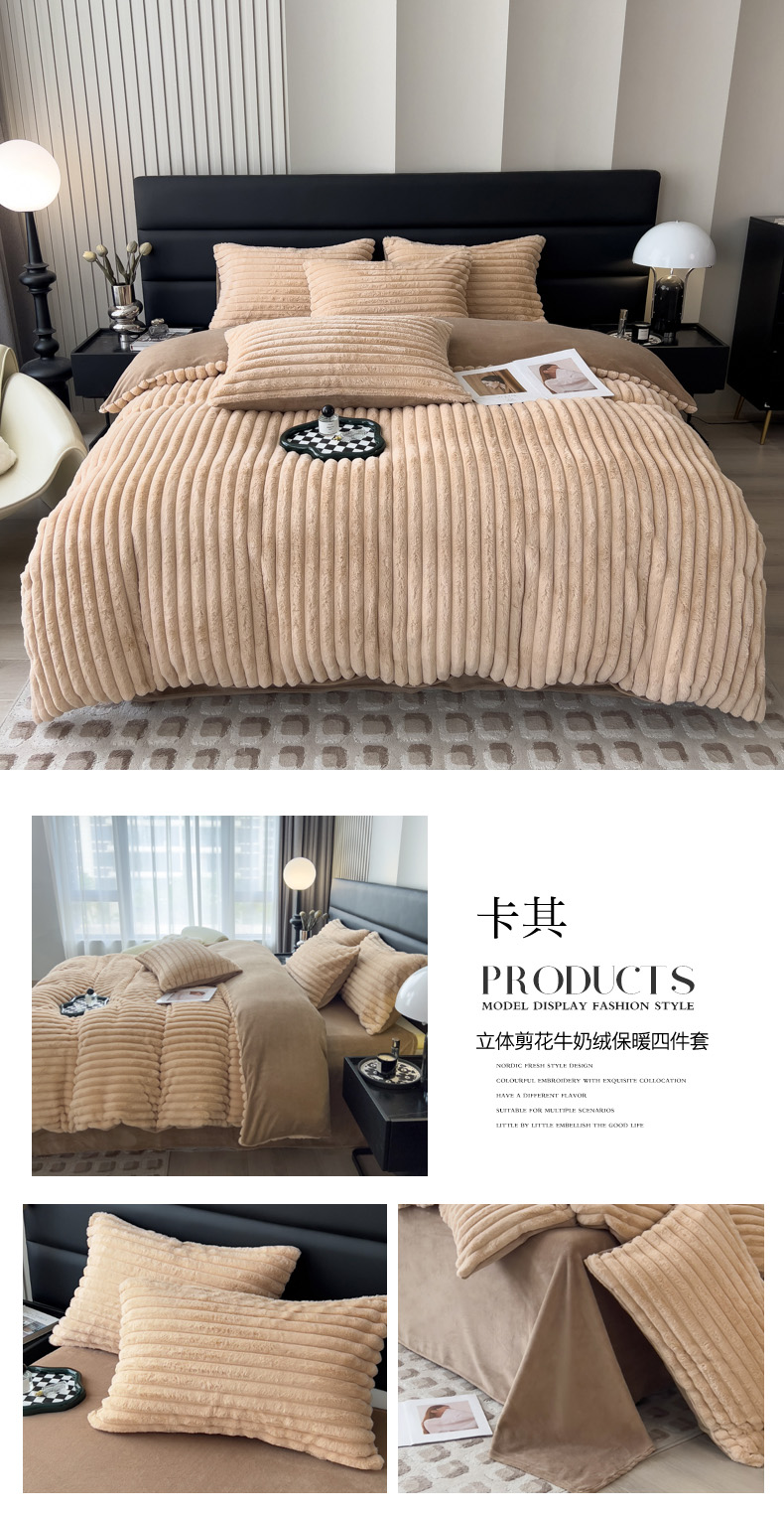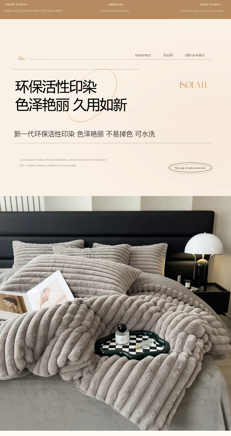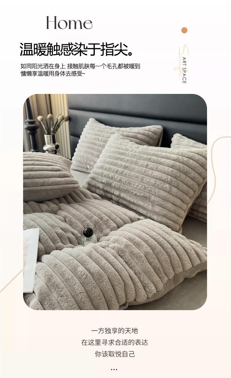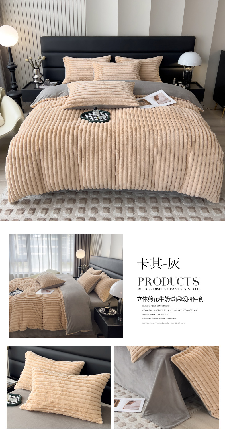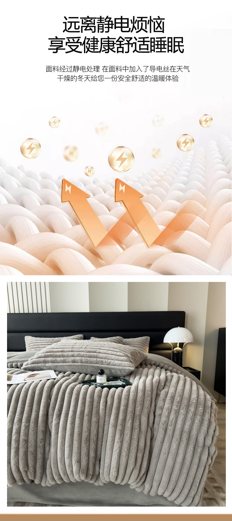 当前位置: 91家纺网 > 商品网购 > 床品套件 > 四件套 > 兔毛绒四件套 > 印季家纺 2025新款立体剪花条纹兔毛绒四件套 高级灰
