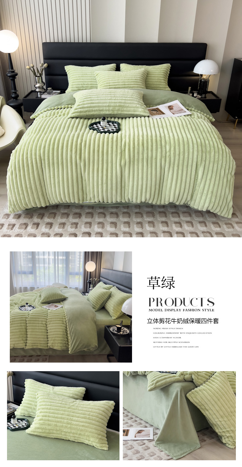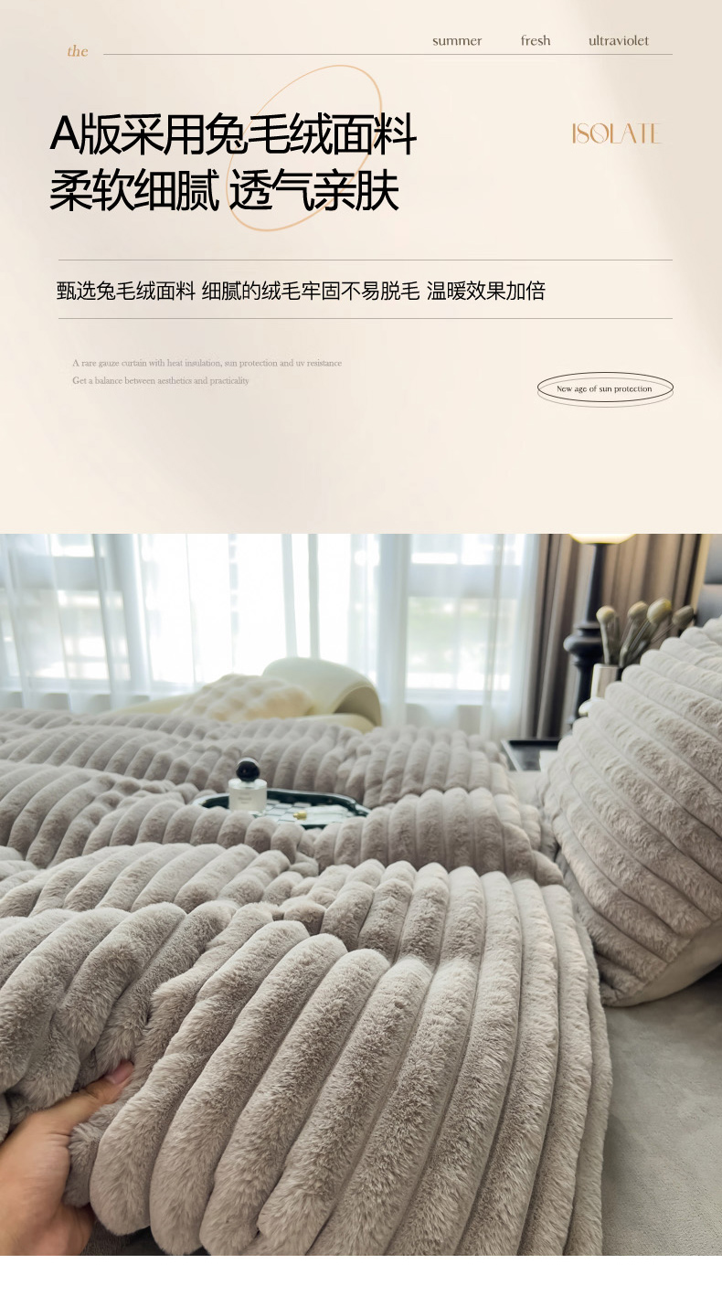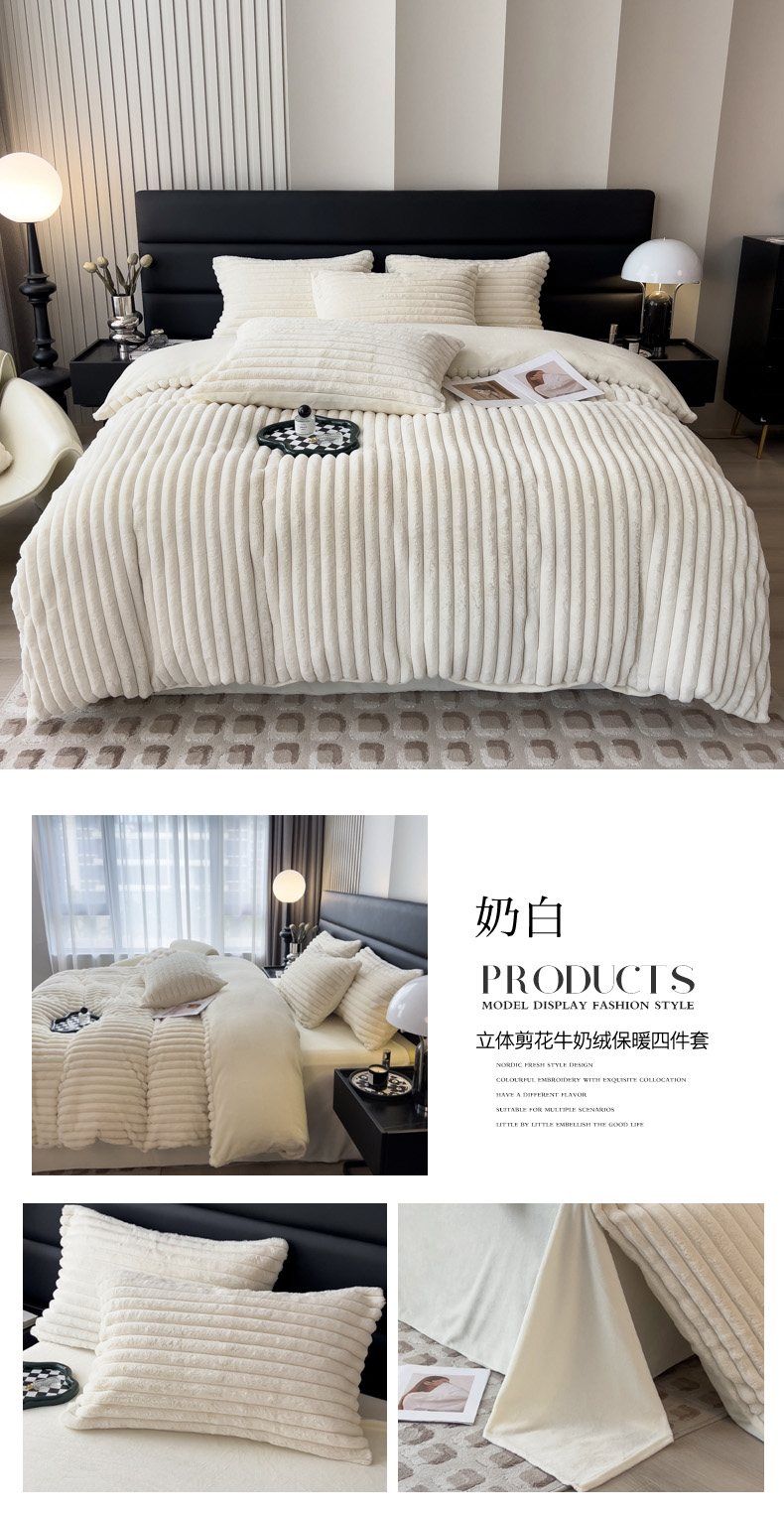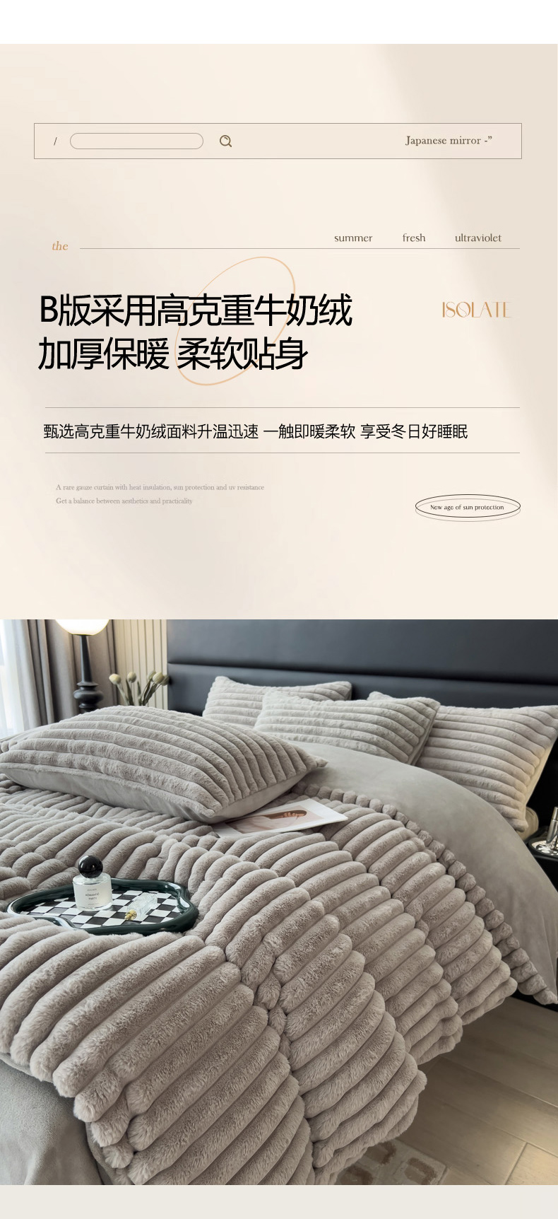 当前位置: 91家纺网 > 商品网购 > 床品套件 > 四件套 > 兔毛绒四件套 > 印季家纺 2025新款立体剪花条纹兔毛绒四件套 高级灰